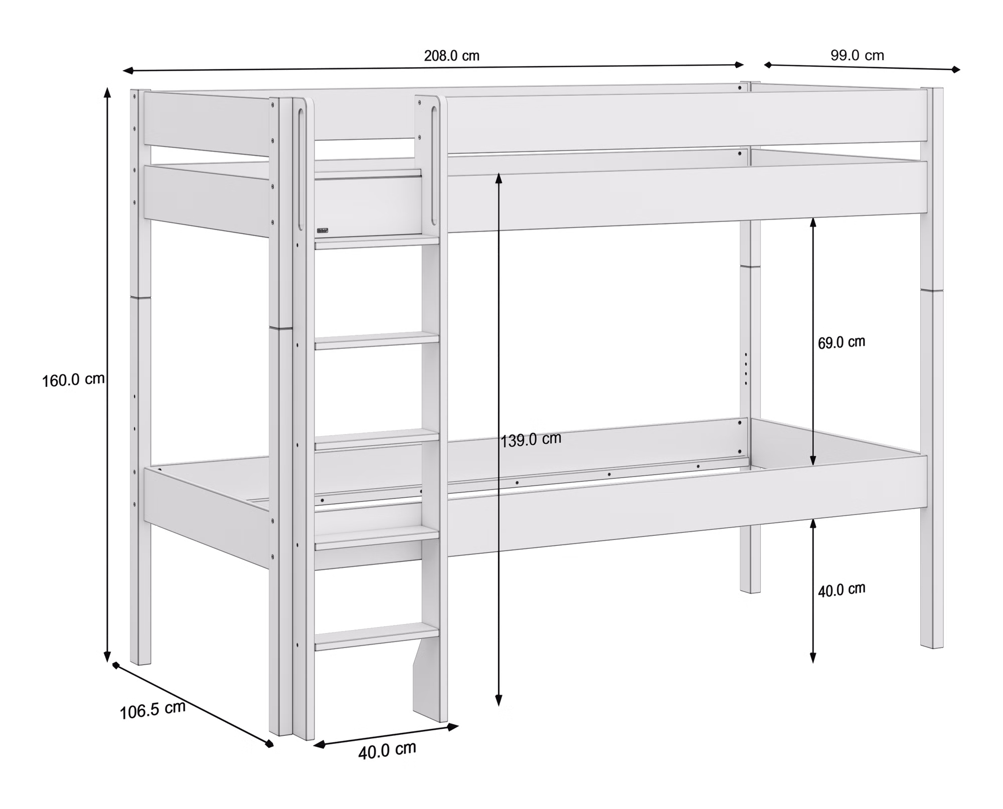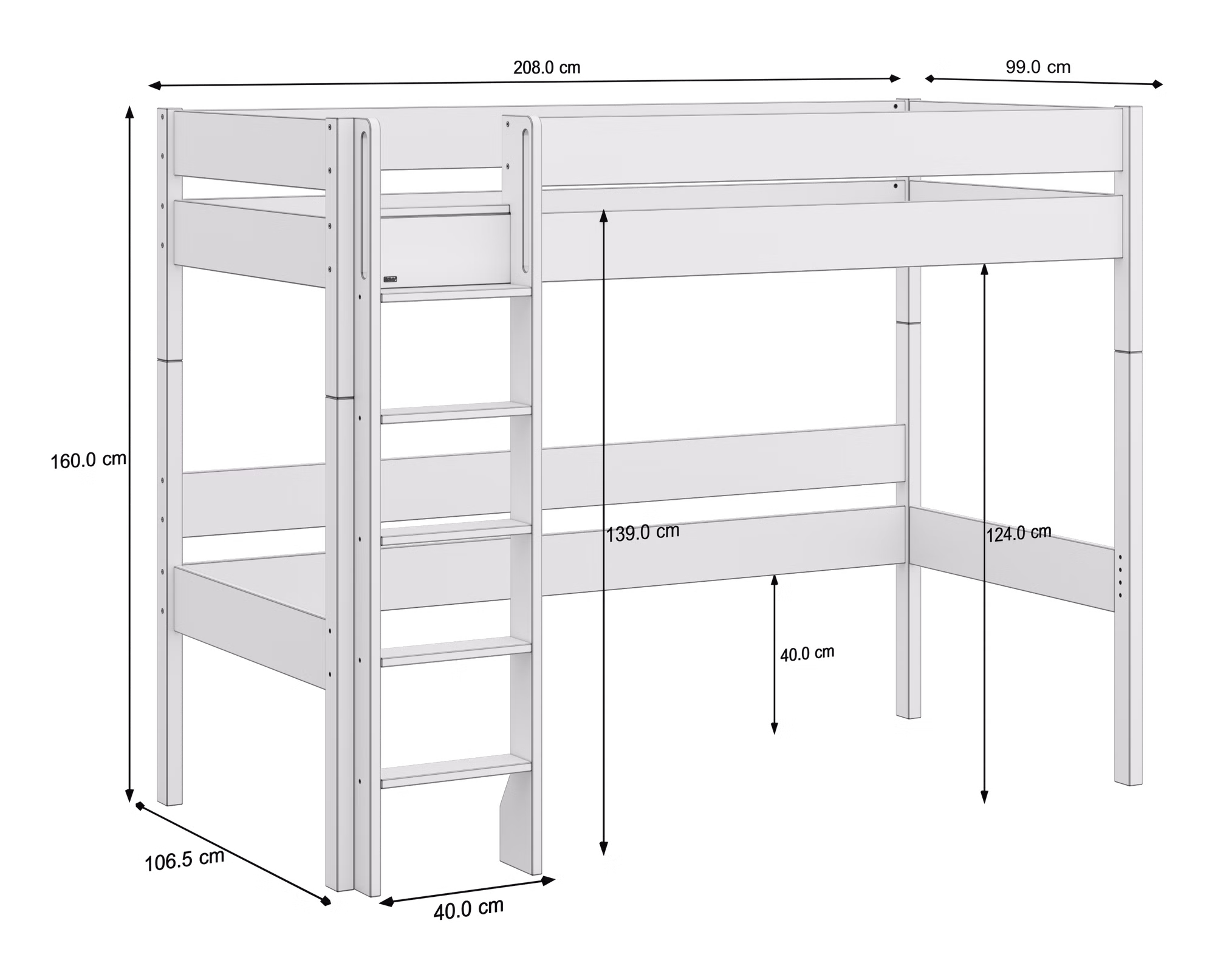 Diese Variante bietet die ideale Höhe für Eltern und Kinder. Das Bett lässt sich bequem beziehen, während Ihr Kind dennoch das Gefühl eines „echten Hochbetts“ genießen kann. Der Platz darunter verwandelt sich im Handumdrehen in eine gemütliche Kuschelhöhle, Leseecke oder Spielwelt – ein Lieblingsort für ruhige Stunden und kreative Abenteuer.