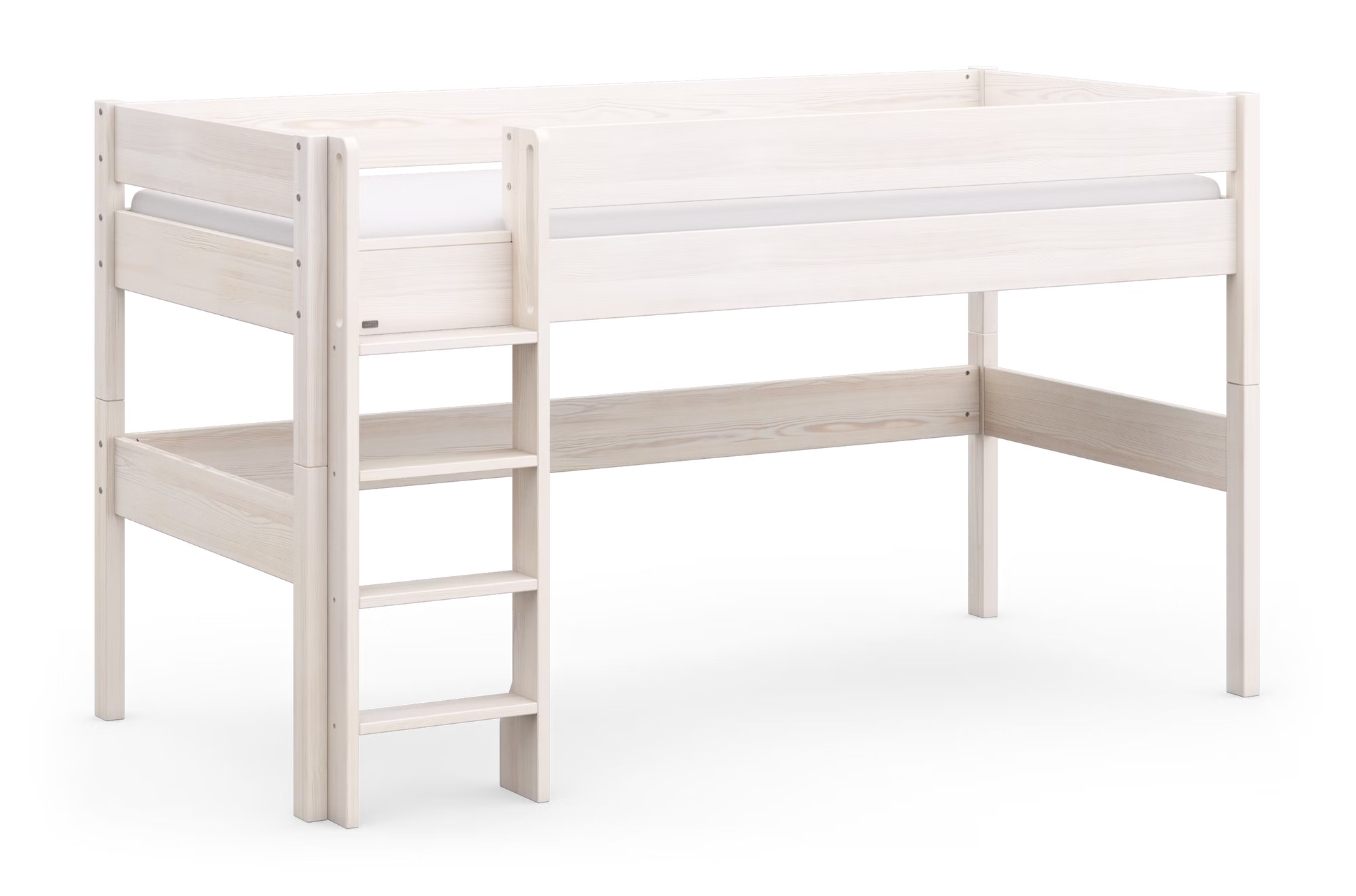 Diese Variante bietet die ideale Höhe für Eltern und Kinder. Das Bett lässt sich bequem beziehen, während Ihr Kind dennoch das Gefühl eines „echten Hochbetts“ genießen kann. Der Platz darunter verwandelt sich im Handumdrehen in eine gemütliche Kuschelhöhle, Leseecke oder Spielwelt – ein Lieblingsort für ruhige Stunden und kreative Abenteuer.