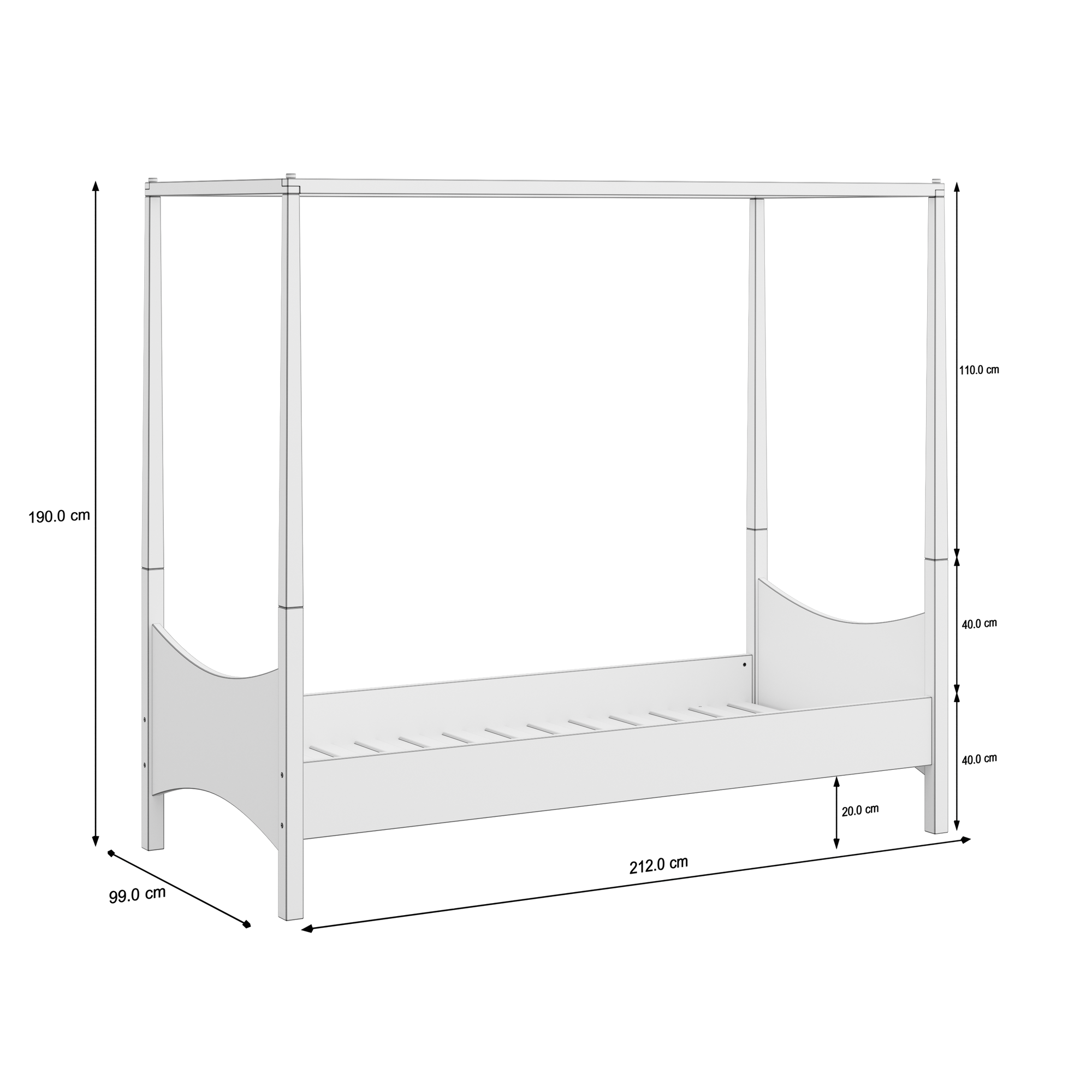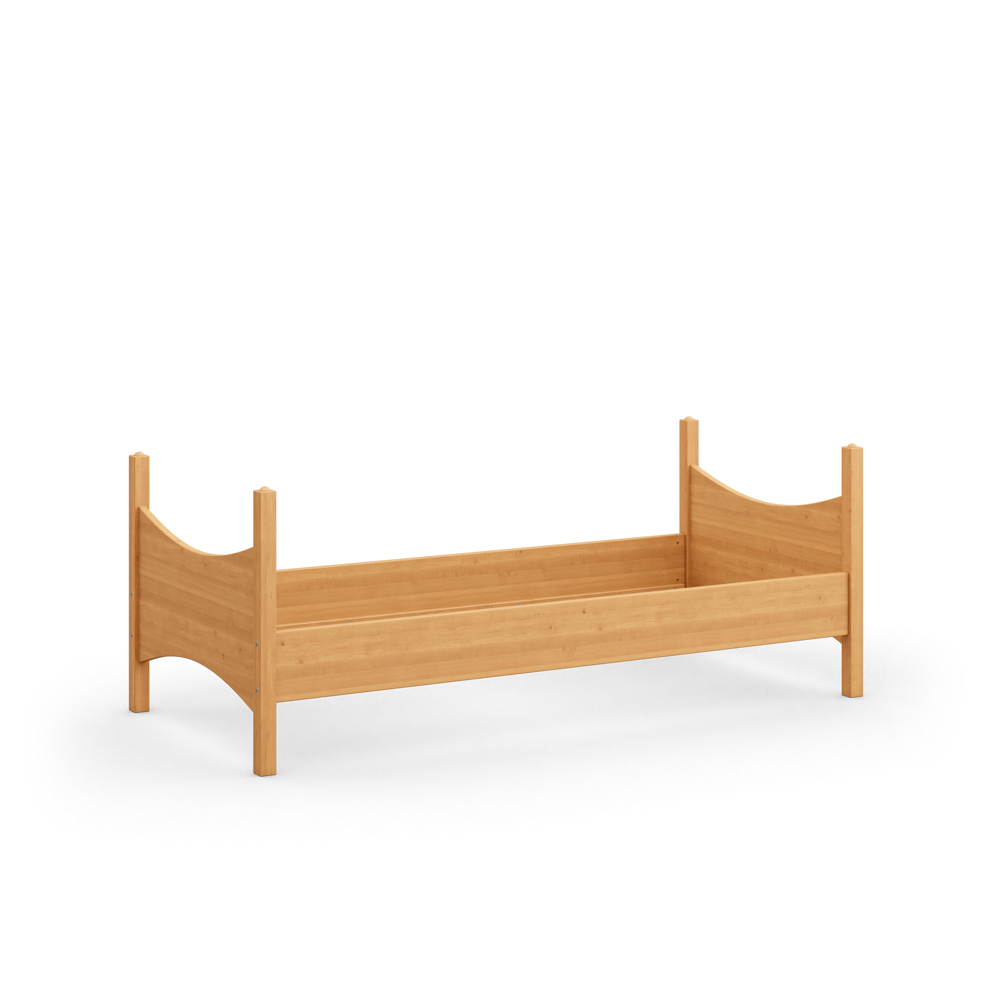 Ein klassisch-schönes Bio-Himmelbett aus Massivholz mit geschlossenen Enden und hohen Pfosten. Gemütliche Kojenform, die mit Vorhängen zu einer traumhaften Wohlfühloase wird.