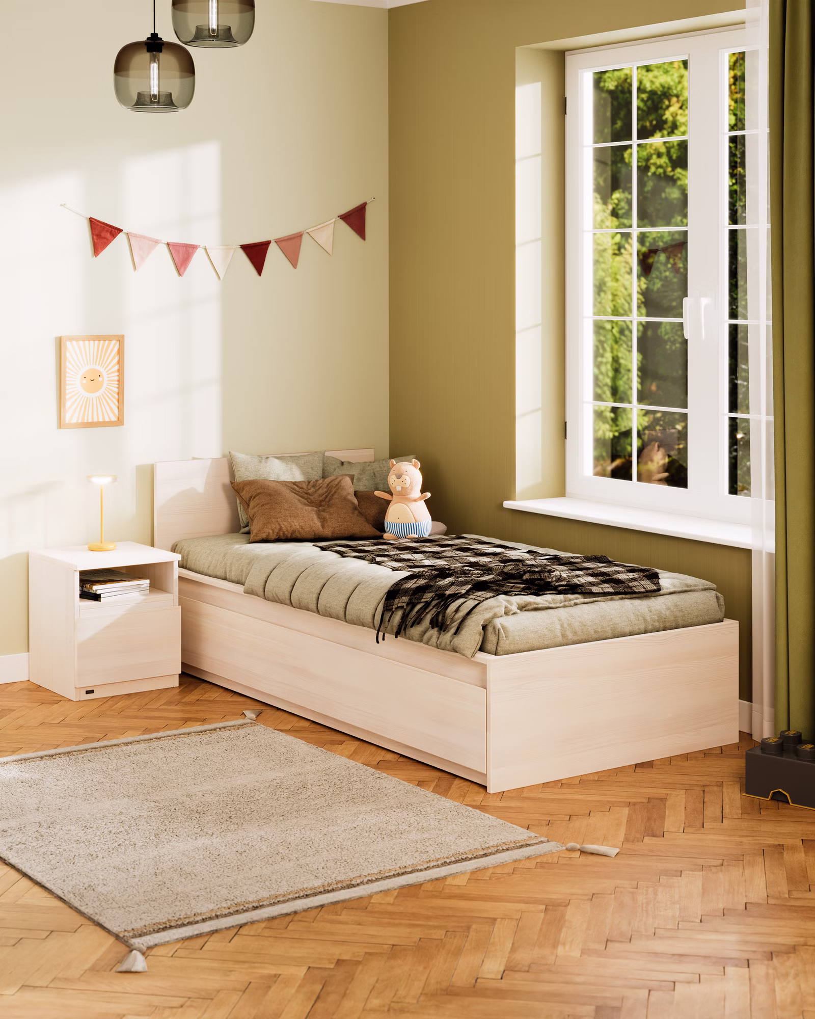 Massivholz aus zertifizierter Forstwirtschaft. BioKinder Möbel werden aus massivem Erlenholz (natur) und Kiefernholz (weiß und bunt lasiert) gefertigt. Veredelt mit bioola® nature Öl und bioola® Lasur.