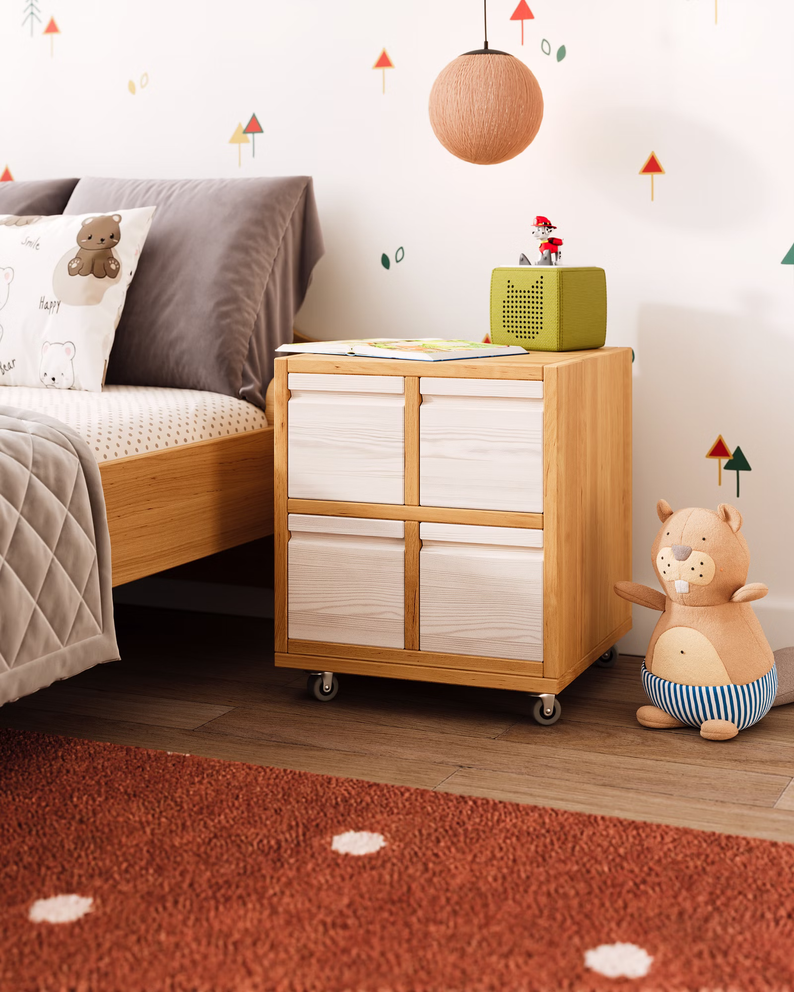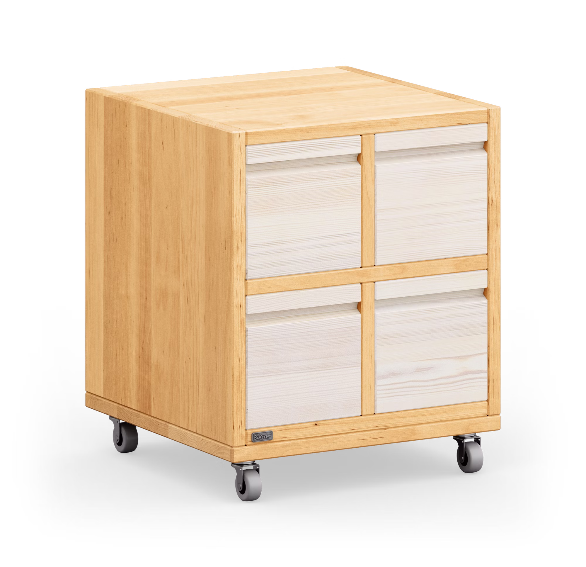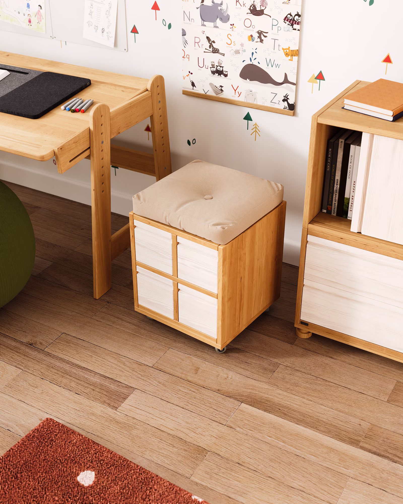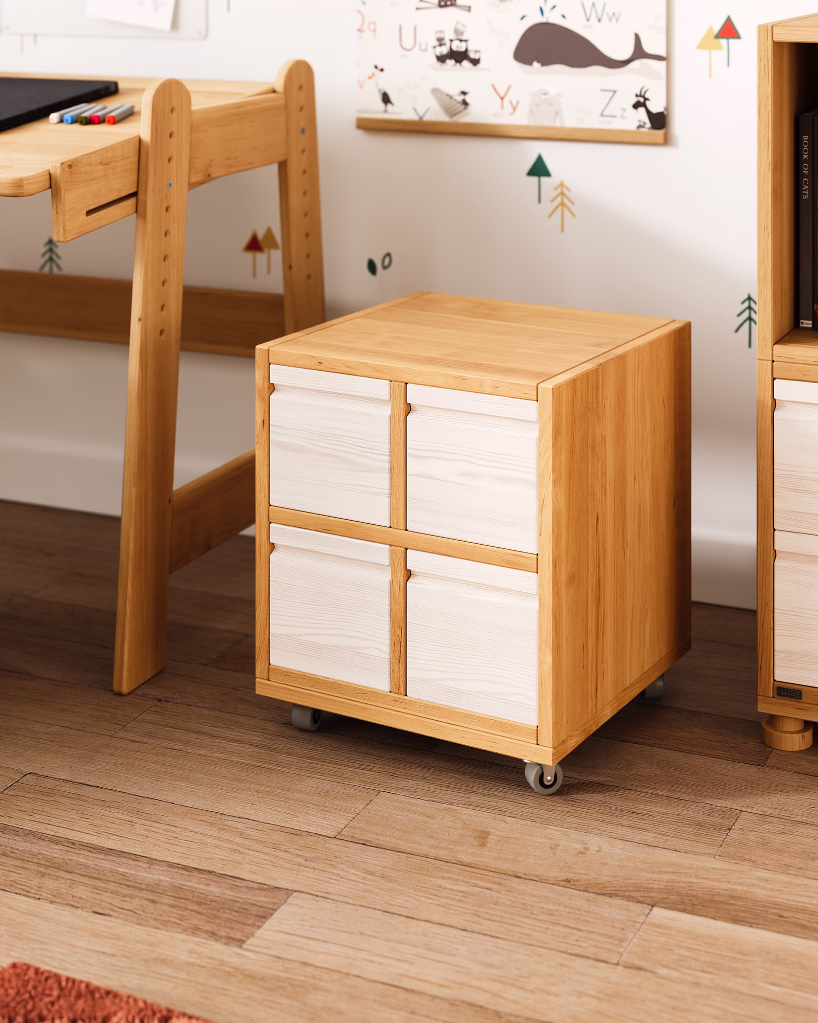 Unser Laura Rollcontainer mit vier Office-Boxen wird aus Bio-Massivholz gefertigt und ist die praktische Ergänzung für jeden Schreibtisch im Kinderzimmer oder Büro. Die Schubladen können farblich auf die Einrichtung abgestimmt werden und setzen so fröhliche Farbakzente im Kinderzimmer.