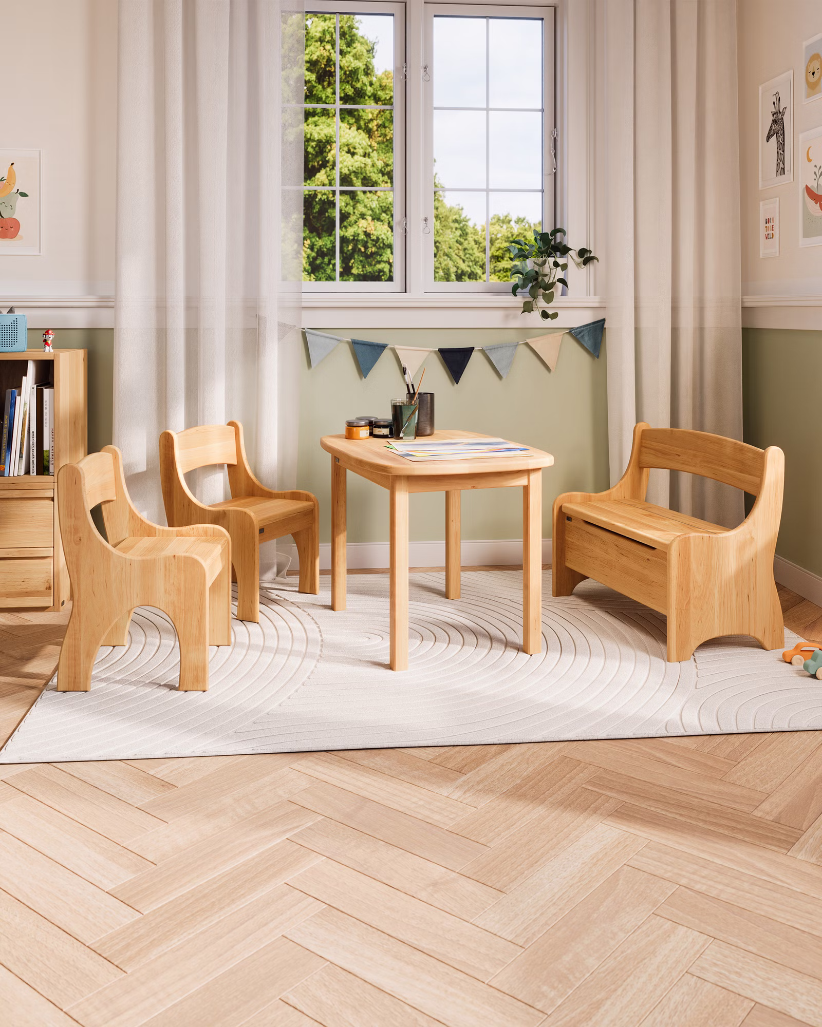 Die perfekte Ausstattung für jedes Spiel- oder Kinderzimmer. Auch sehr gut geeignet zum Einrichten einer eigenen kleinen Spiel- und Bastelecke im Wohnbereich oder in der Kita.