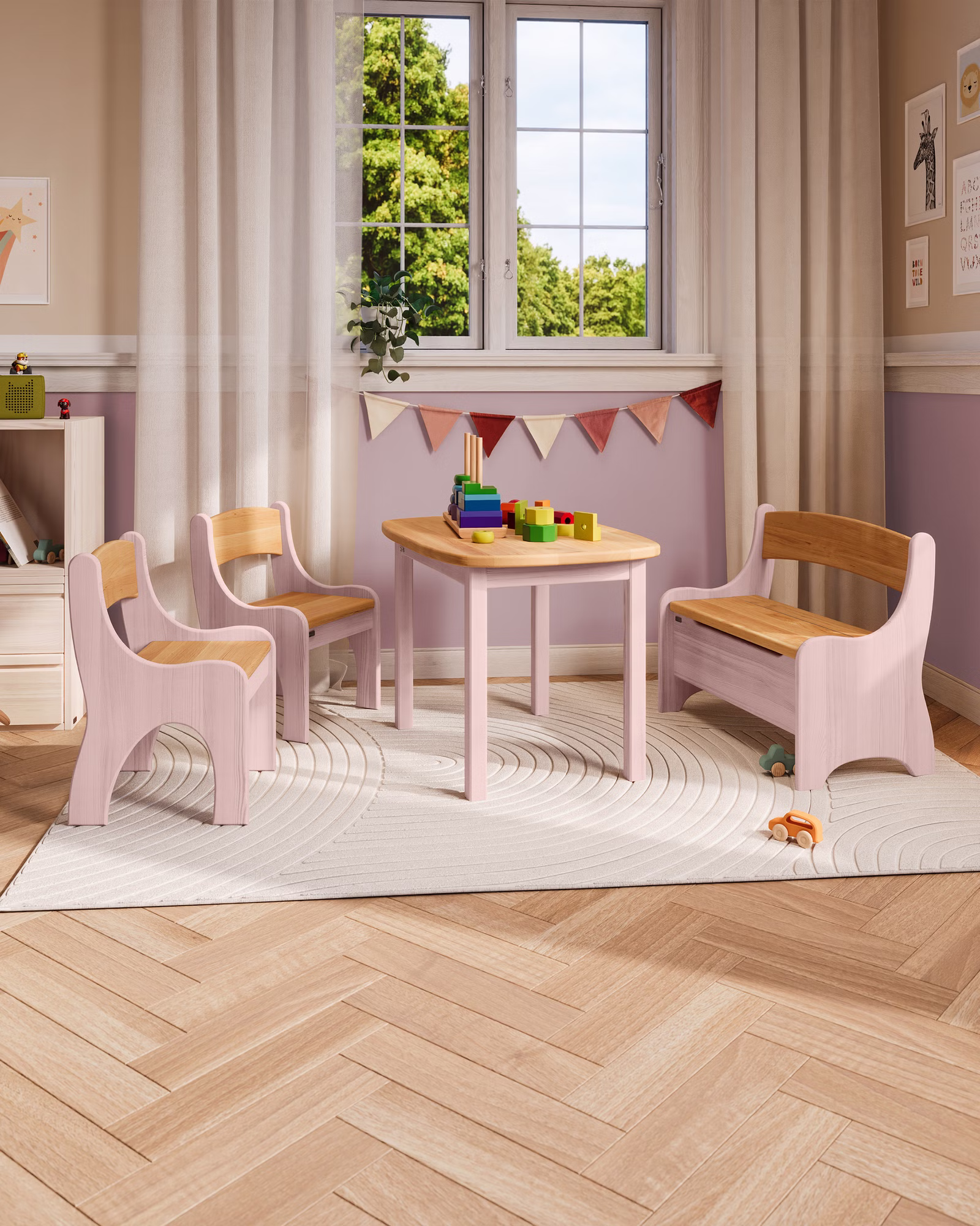 Wir haben uns in die Lage des Kindes versetzt und entstanden sind wunderschöne Kindermöbel mit kindlichen Proportionen und harmonisch abgerundeten Formen, die sich schön anfassen lassen.