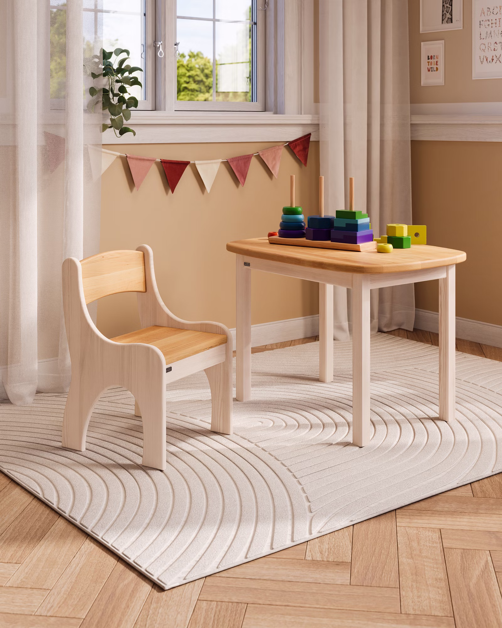 Wir haben uns in die Lage des Kindes versetzt und entstanden sind wunderschöne Kindermöbel mit kindlichen Proportionen und harmonisch abgerundeten Formen, die sich schön anfassen lassen.