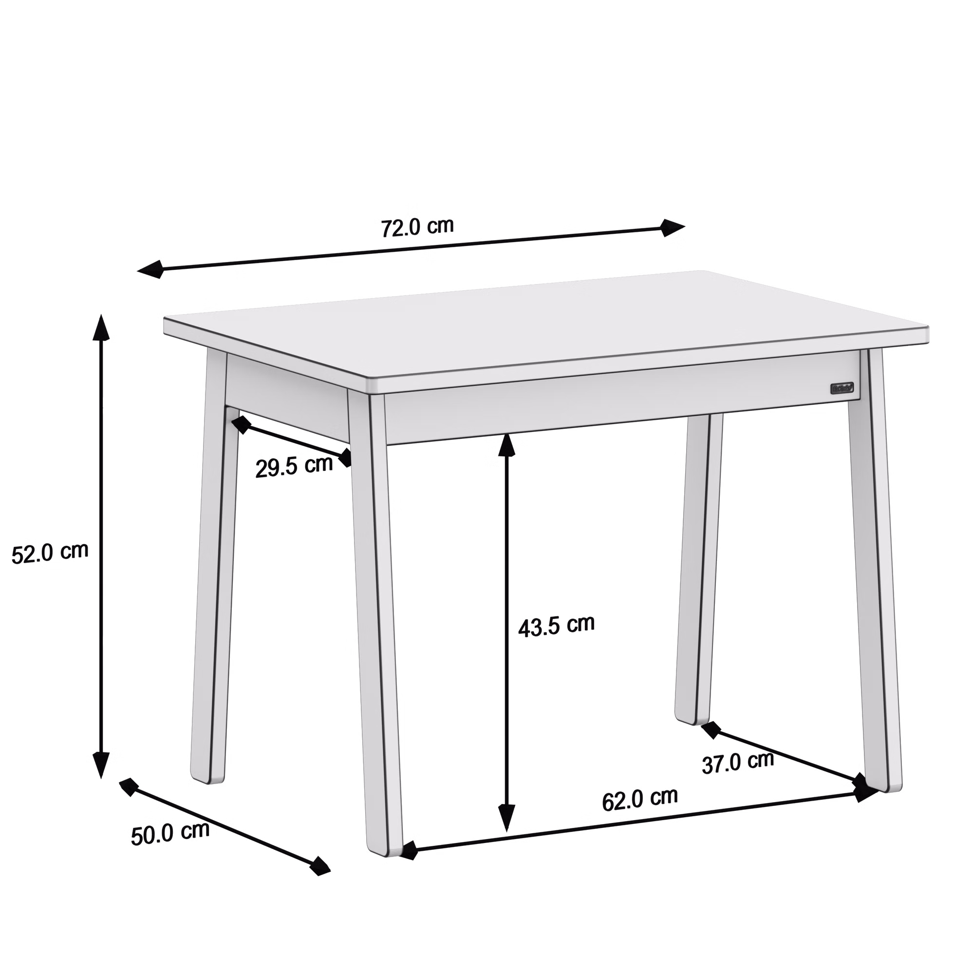 • Maße Kindertisch: B 72 x T 50 x H 52 cm
