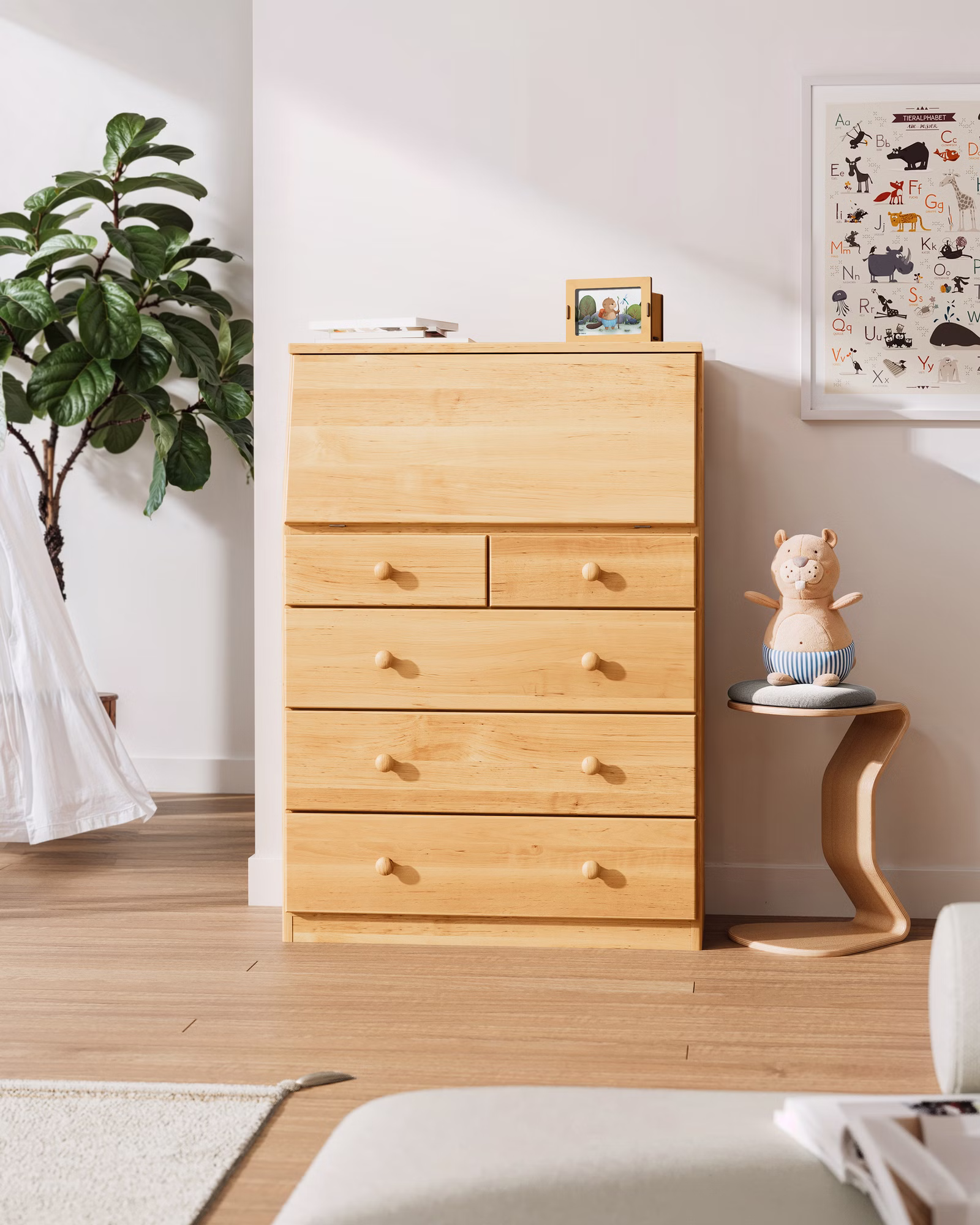 Gestaltet wurde er in Zusammenarbeit mit den italienischen Designern Stefano Bettio und Oscar Buffon. Die verwendeten Hölzer sind zertifiziert und stammen aus nachhaltig bewirtschafteten europäischen Wäldern.