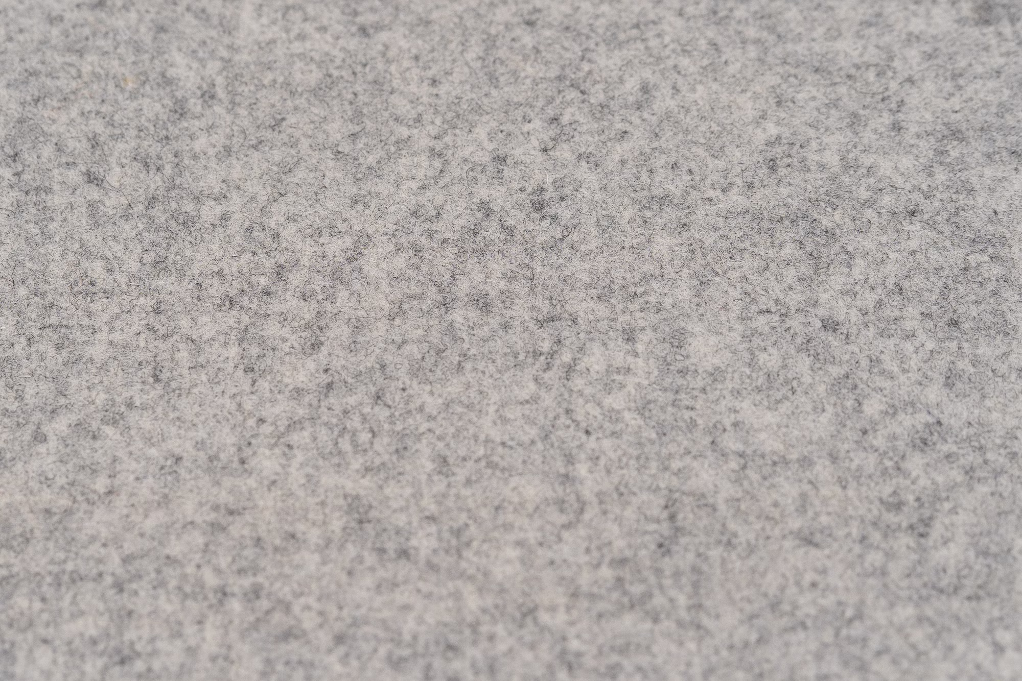Bezogen ist er mit einem weichem, gewebtem Polsterstoff mit gewalkter Filzoberfläche aus Schafsschurwolle.