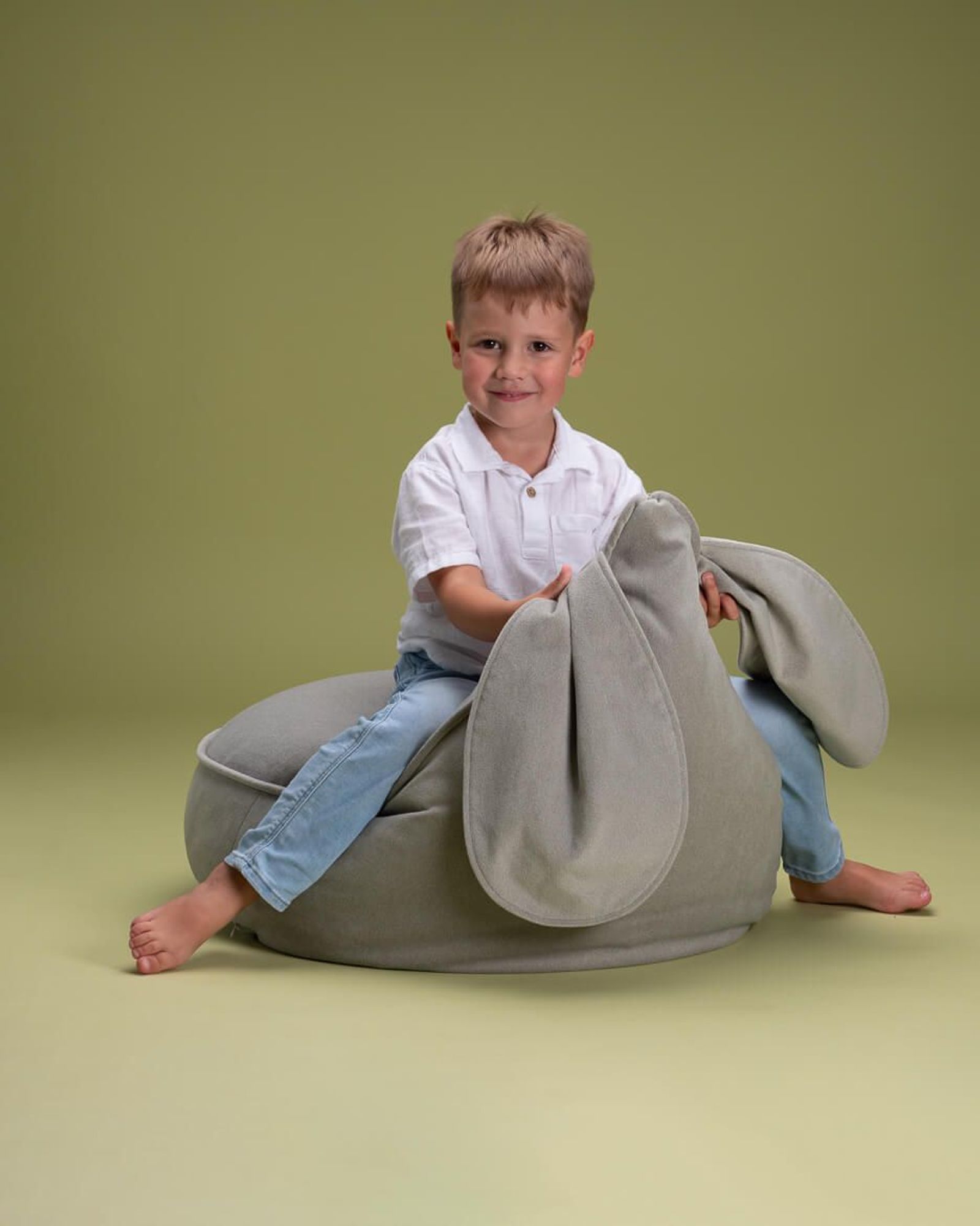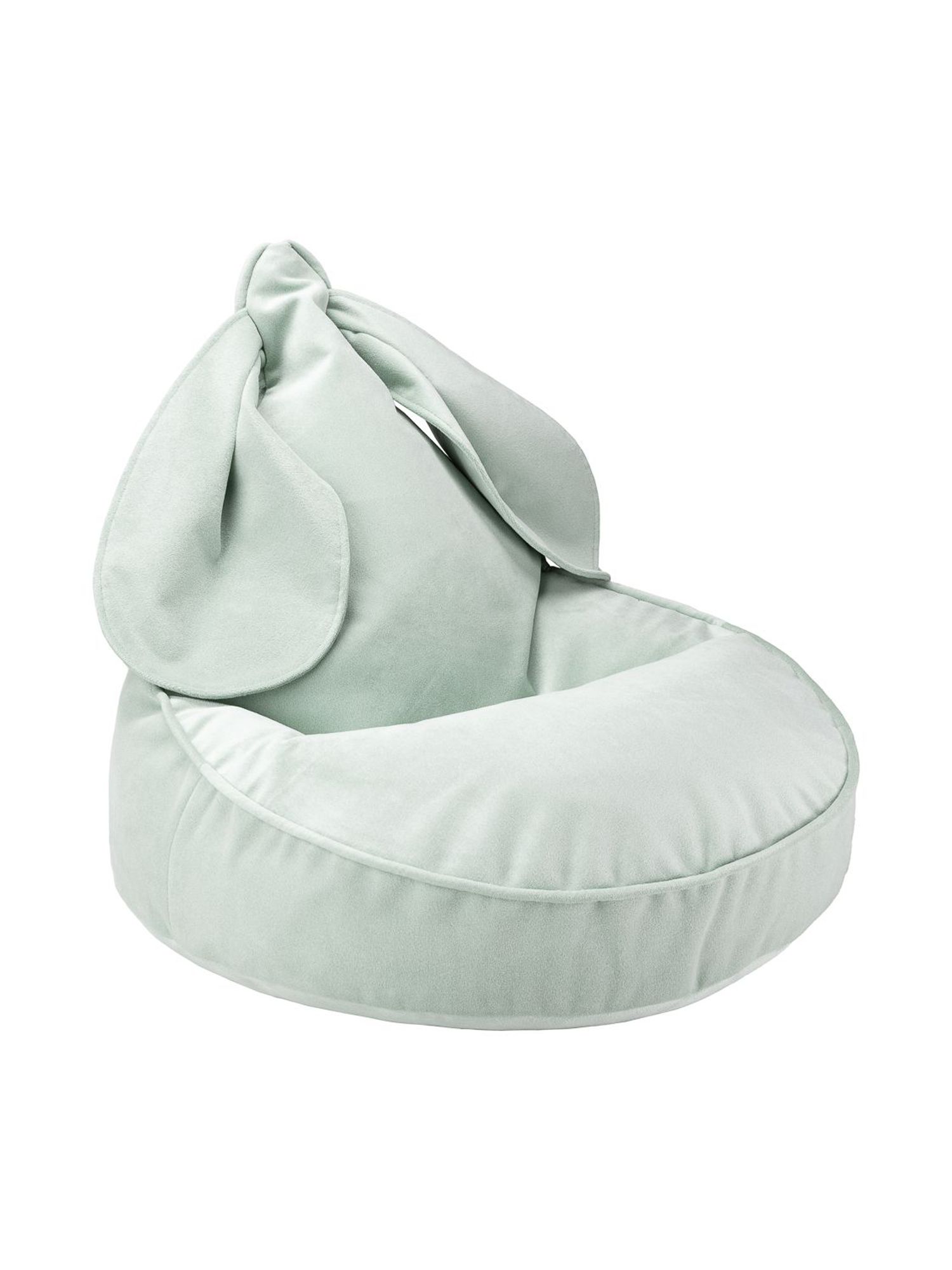 Mithilfe der langen Hase-Ohren kann der Sitzsack kinderleicht bewegt werden. Außerdem lässt sich der Samt Bezug, dank des Reisverschlusses, abnehmen und waschen.