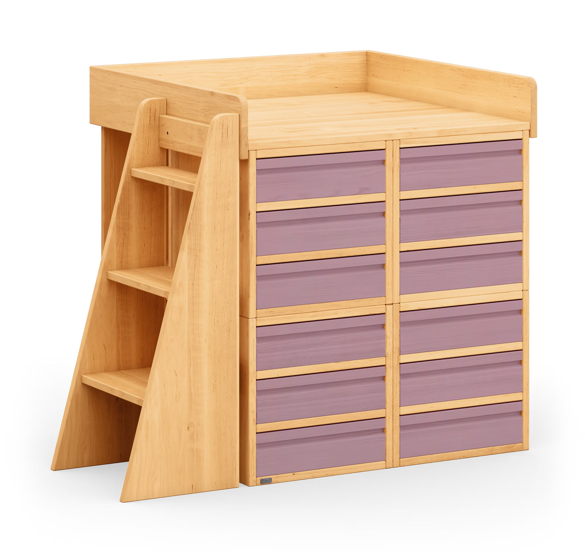 Dank zwölf geräumigen Schubladen können Wickelutensilien, Kleidung und Spielzeug speziell für jedes Kind separat und geordnet verstaut werden. Die elegant gefrästen Griffmulden an der Vorderseite der Schubladen und das schöne Griffloch hinten ermöglichen eine individuelle Gestaltung der Front und ein leichtes Öffnen und Schließen.