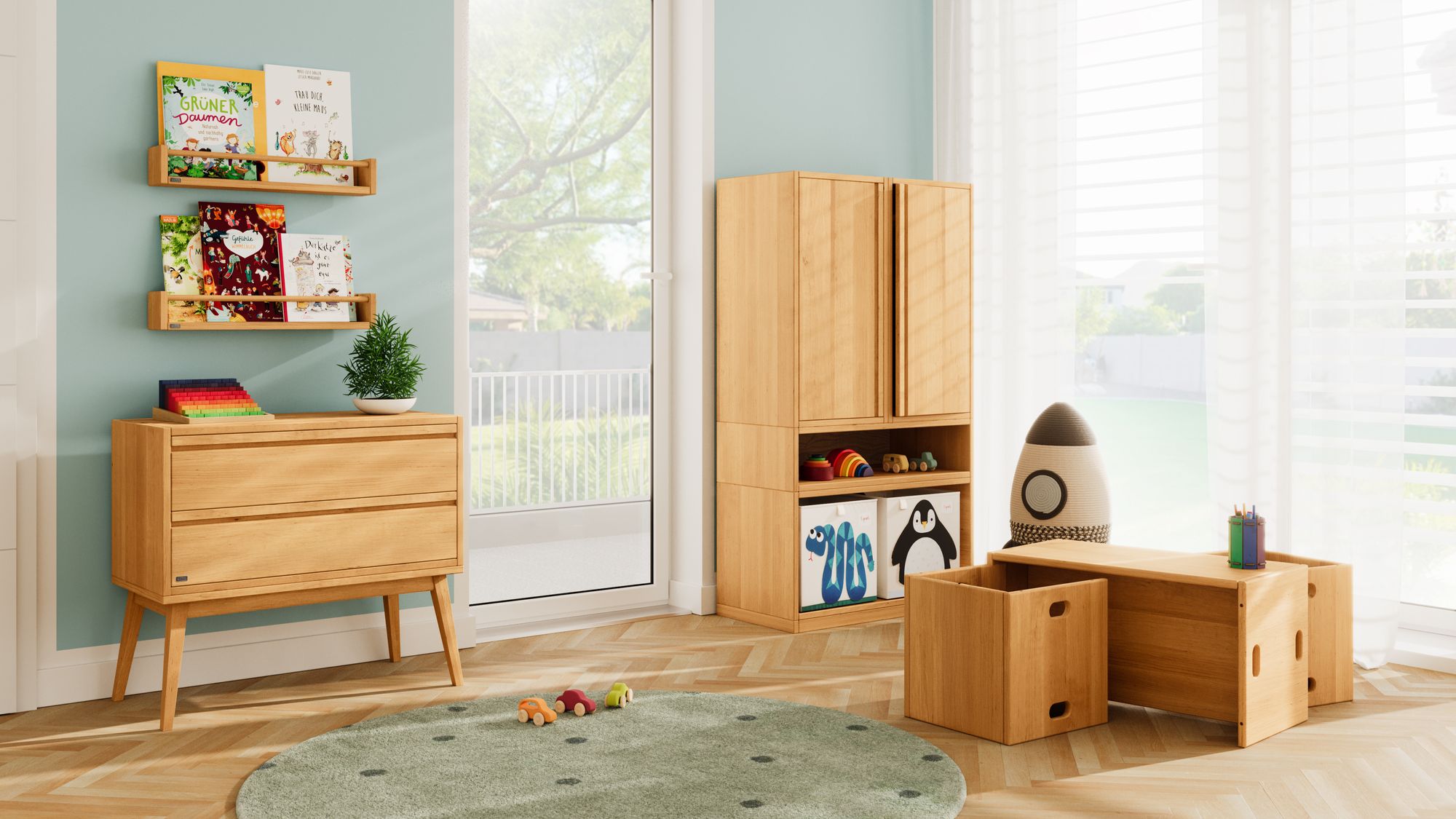Massivholz aus nachhaltiger Forstwirtschaft. BioKinder Möbel werden aus massivem Erlenholz (natur) und Kiefernholz (weiß und bunt lasiert) gefertigt. Die natürliche Beschaffenheit jedes Möbelstücks wird durch bioola® nature Öl bzw. bioola® colour Lasur aus natürlichen Erd- und Mineralpigmenten und pflanzlichem Carnaubawachs erhalten und weiter veredelt.