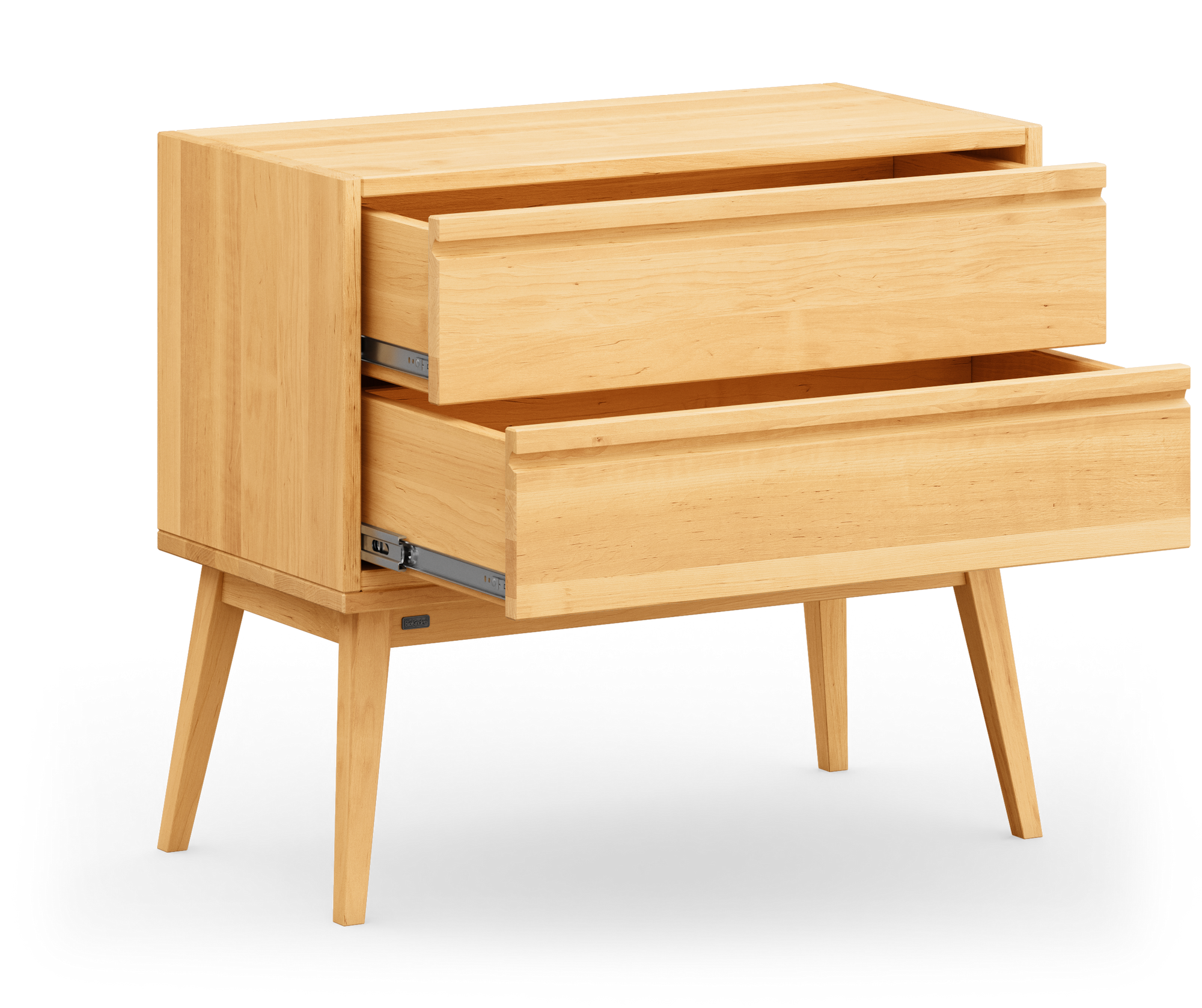Die beiden Schubladen des Regalwürfels sind mit Soft-Close-Mechanismus für ein sicheres und geräuscharmes Schließen ausgestattet. Darüber hinaus verfügen sie über kugelgelagerte Leichtlaufschienen mit Selbsteinzug. Die Schubladen lassen sich voll ausziehen und bieten so einen Einblick bis in den hintersten Bereich des Schubkastens.