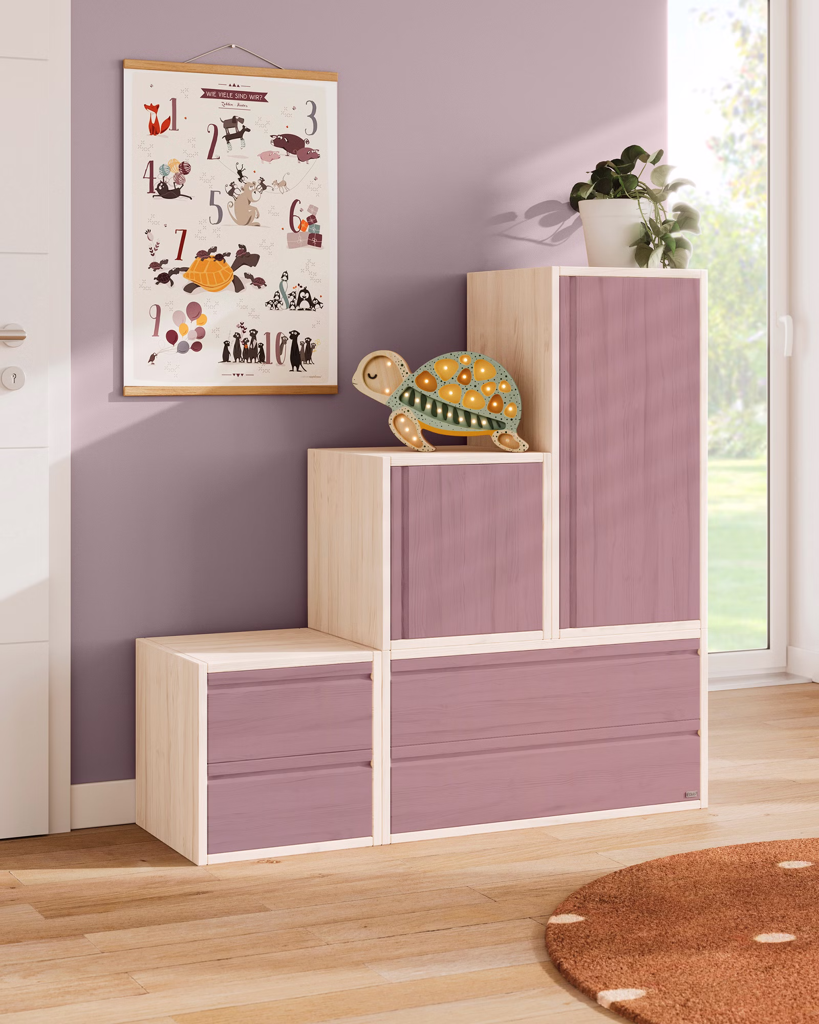 Die einzelnen Laura Regalwürfel können flexibel kombiniert und immer wieder neu zusammengefügt werden, sodass sie individuelle Kommoden, Regale und Raumteiler ergeben. Dank dieser vielseitigen und individuellen Einsatzmöglichkeiten ist die Laura Stufenkommode ein mitwachsendes Möbelstück, das lange Freude bereitet.