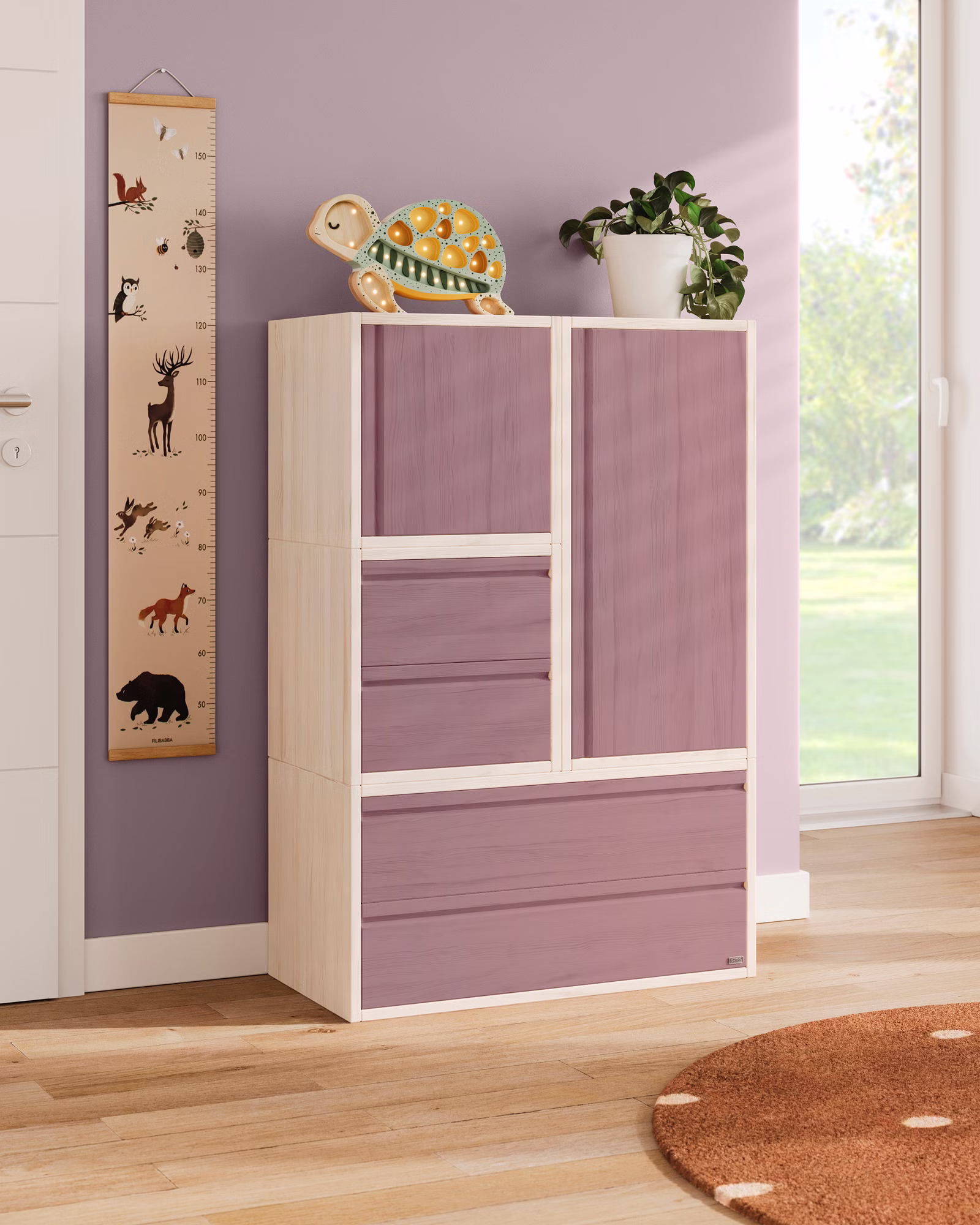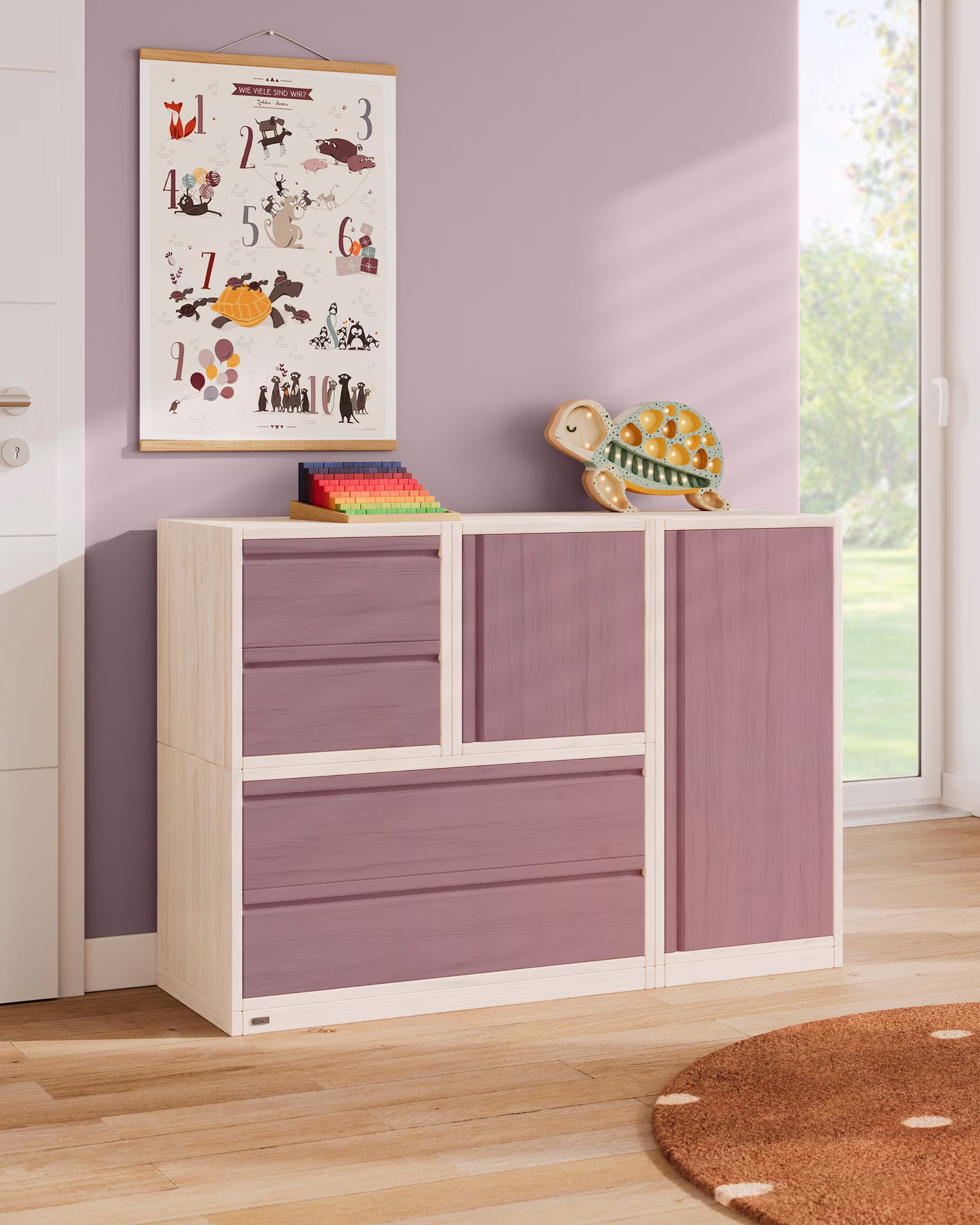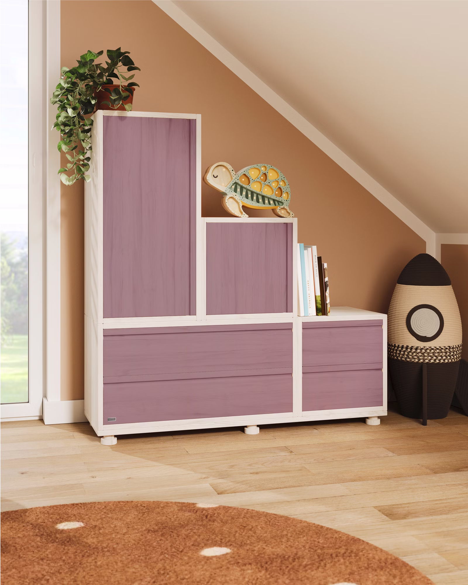 Unser Laura Sideboard wird aus Bio-Massivholz gefertigt und ergänzt jedes Zimmer dank ihrer flexiblen Einsatzmöglichkeiten ideal. Die stufig angeordnete Kommode passt in jeden Raum und findet dabei auch unterhalb von Dachschrägen Platz. Die Kombination aus Regalwürfeln mit Türen und Schubladen sorgt schnell für eine verbesserte Übersichtlichkeit und Ordnung, sodass kleinere und größere Gegenstände bequem verstaut werden können.