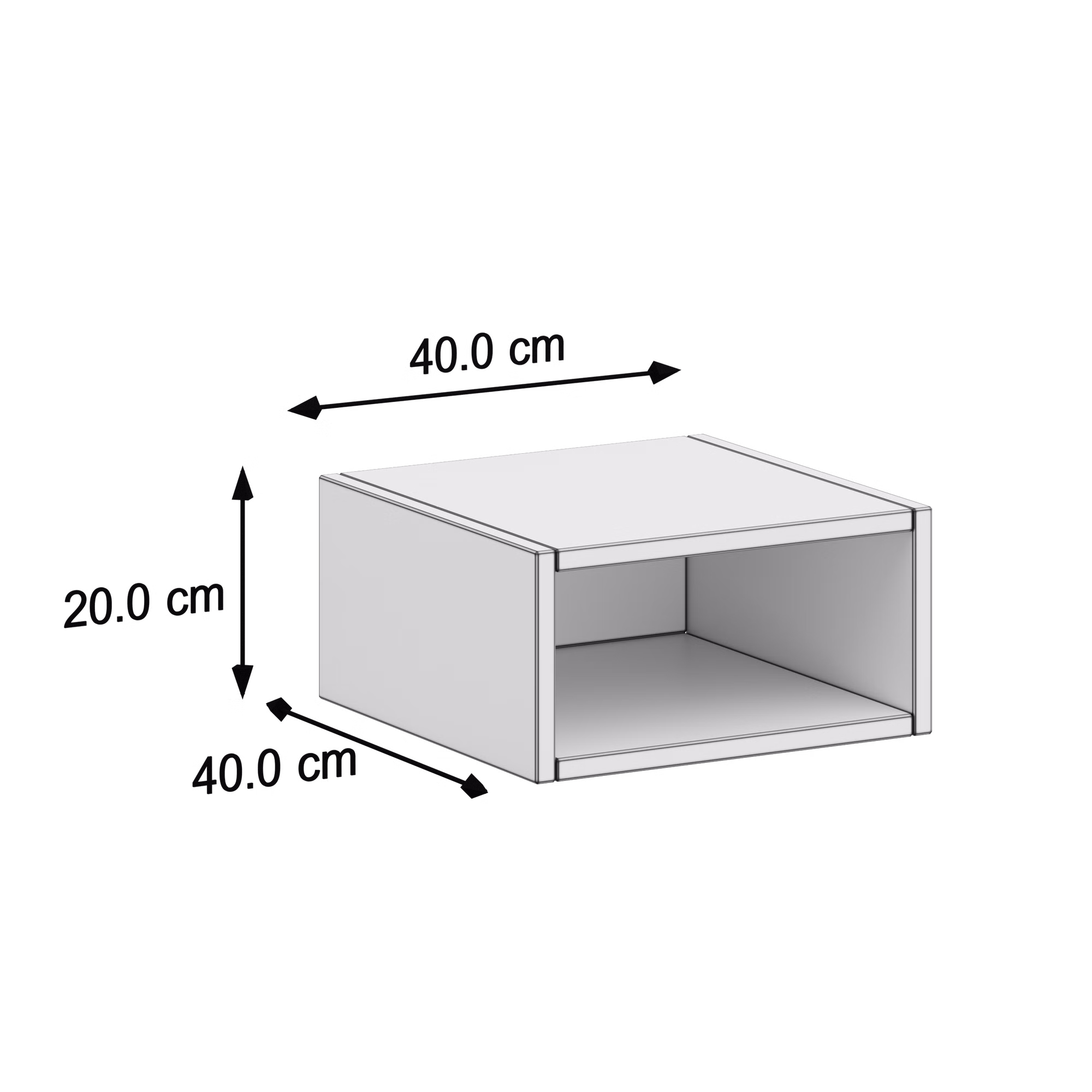 • 1x Regalwürfel mit Rückwand: Außen L 40 x B 40 x H 20 cm