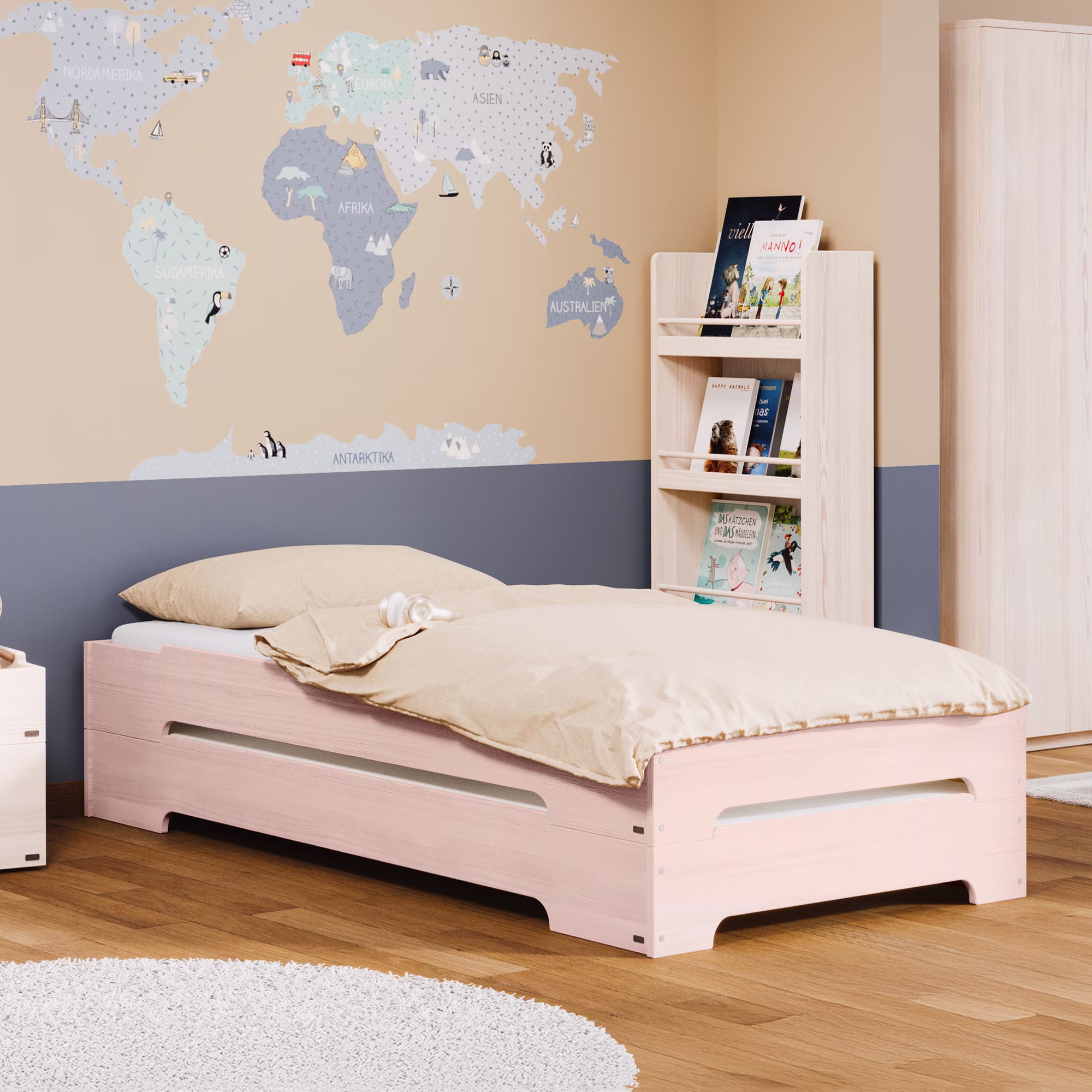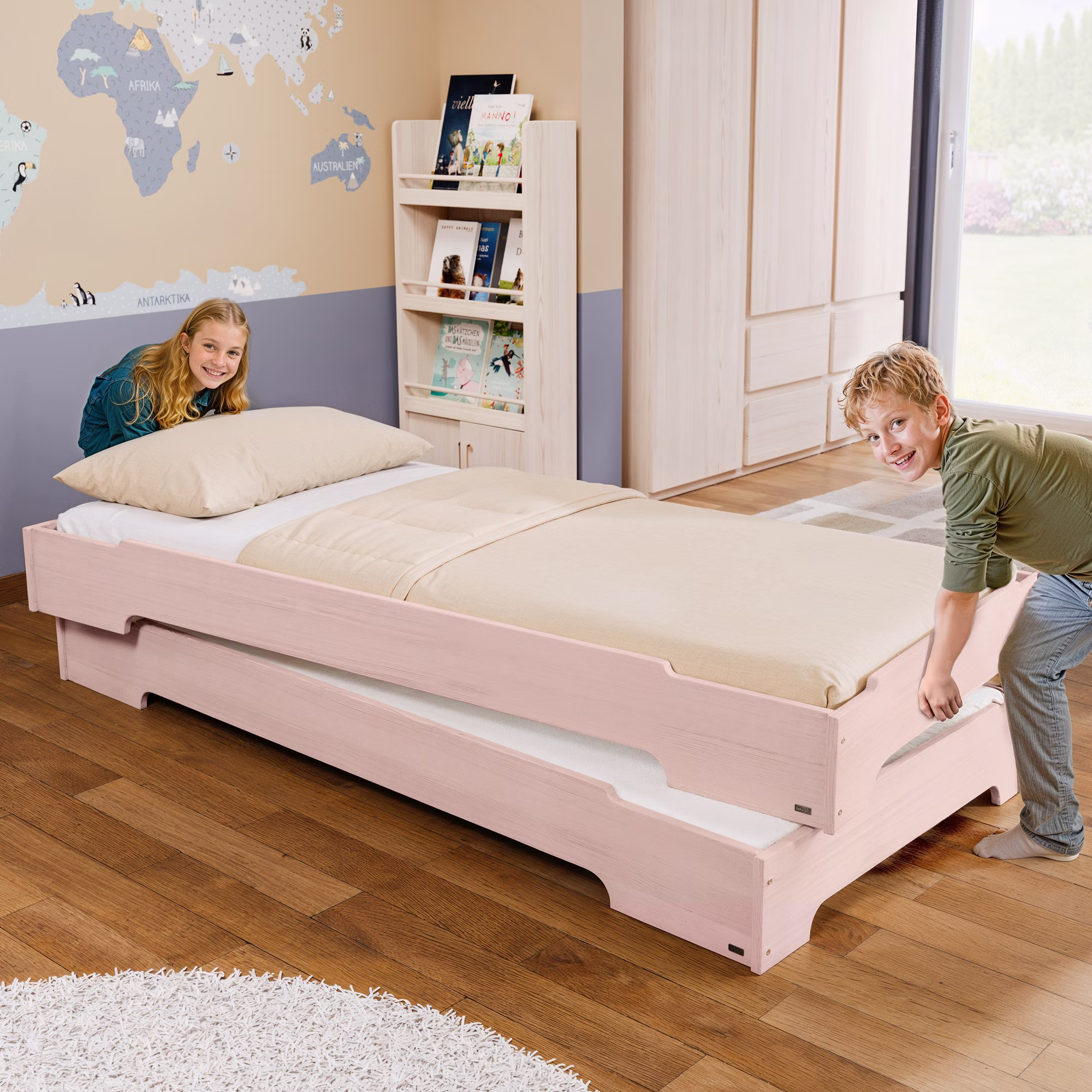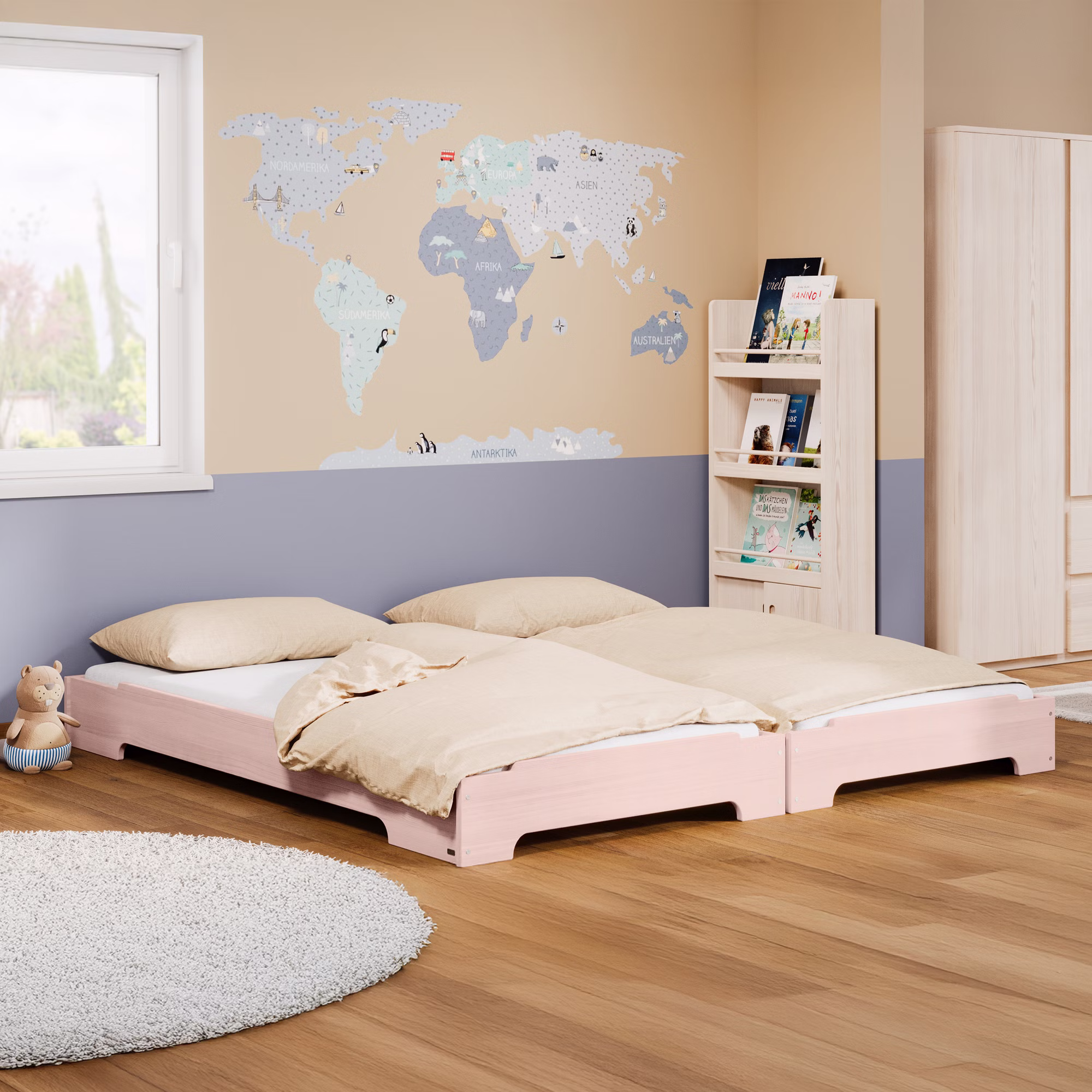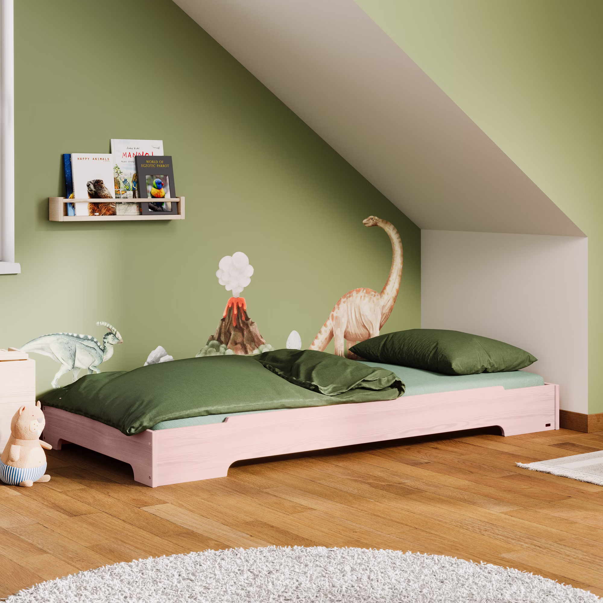 Zudem lässt sich unser Kai Stapelbett auch im Sinne der Montessori-Philosophie als Bodenbett einsetzen. Die Nähe zum Boden ermöglicht eigenständiges Aufstehen und Zubettgehen und fördert so die Autonomie Ihres Kindes. Darüber hinaus bietet ein Bodenbett die Möglichkeit, sich selbstbestimmt und frei zu bewegen. Das Design unseres Kai Bodenbetts sorgt dank der durchdachten Aussparungen außerdem für eine gute Durchlüftung der Bettunterseite und ein angenehmes Schlafklima.