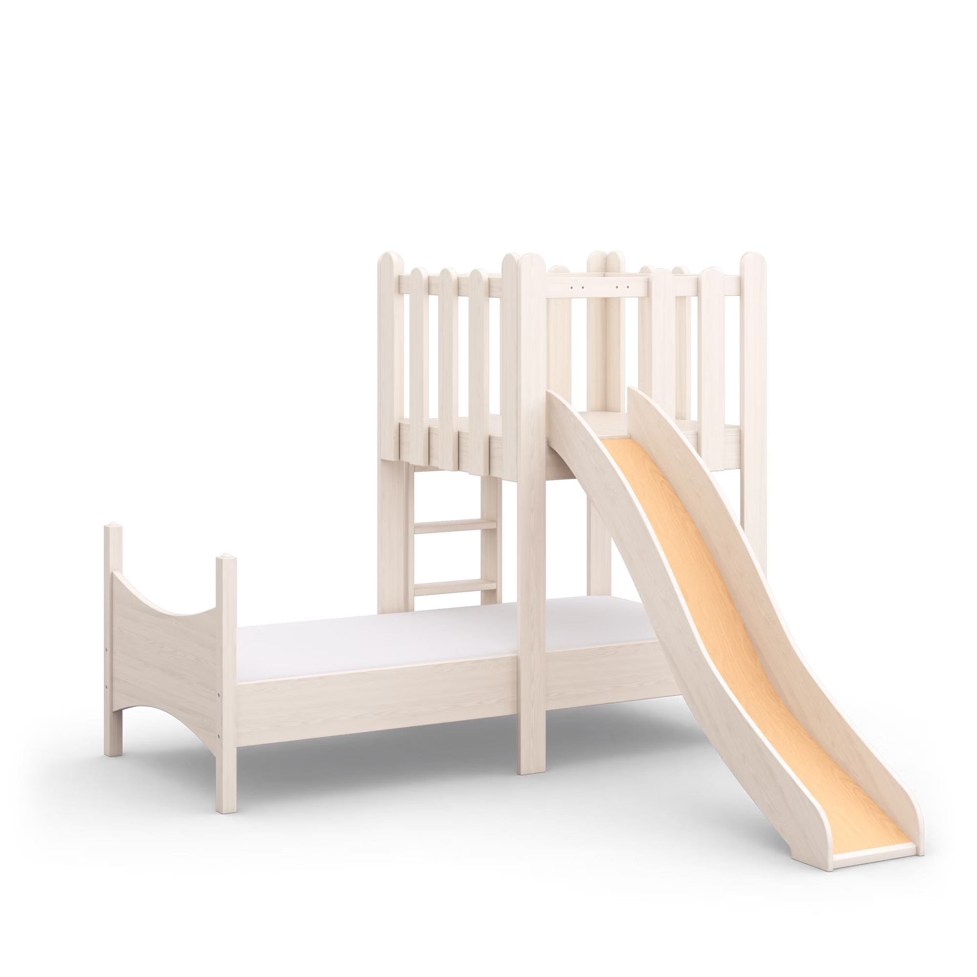 Mit dem Noah Komplett-Set mit Spielturm wird das Kinderzimmer zum tollen Indoor-Spielplatz. Das Bett und der Turm sind aus massivem Bio-Massivholz. Der Spielturm wird sicher und stabil mit dem Bett verbunden und verwandelt das Bett in ein Abenteuerbett, in dem man von tollen Abenteuern träumen kann. Später kann das Bett zu einem frei stehenden Einzelbett oder mit weiteren Elementen zu einem Himmelbett umgebaut werden und ist somit sehr wandelbar.