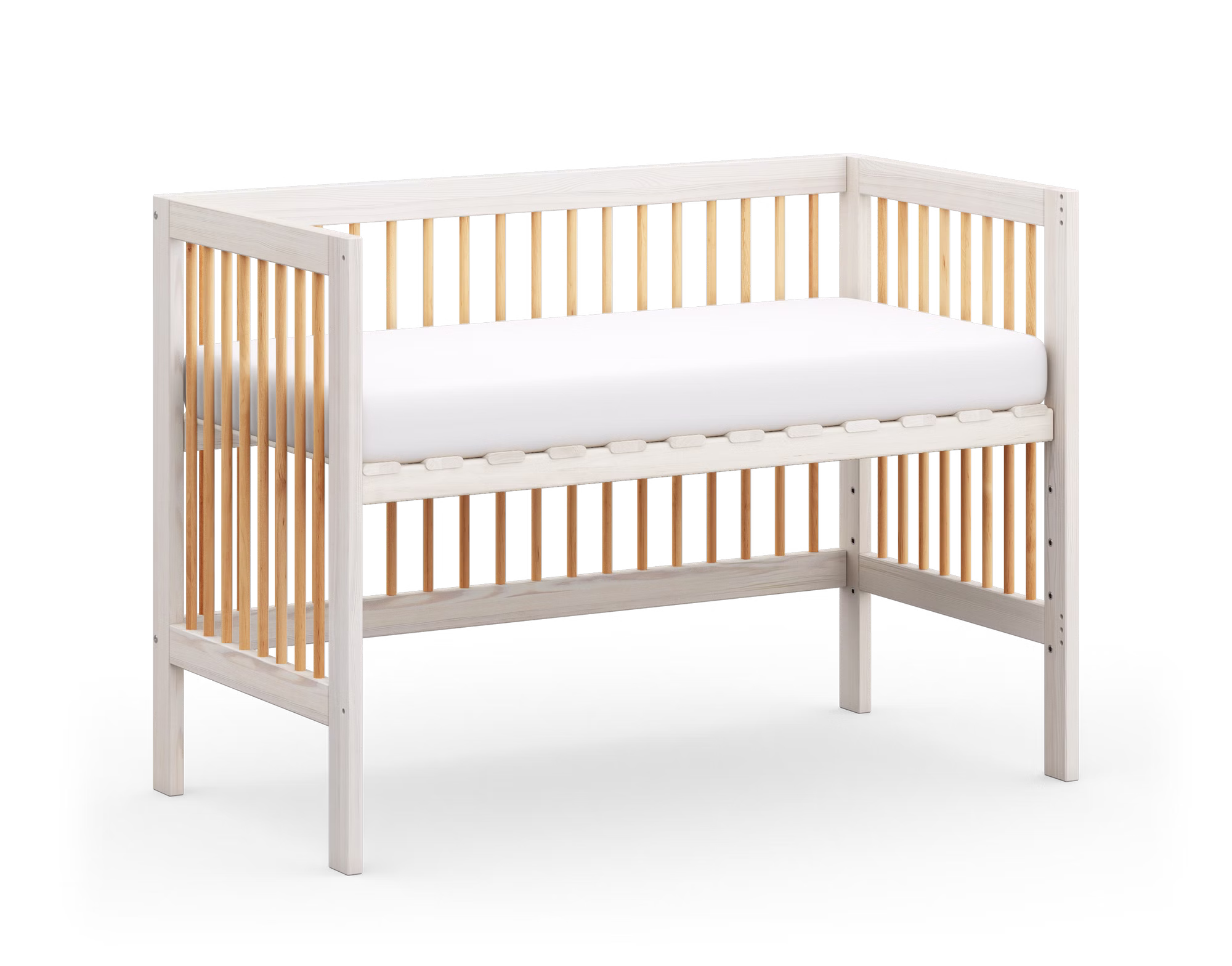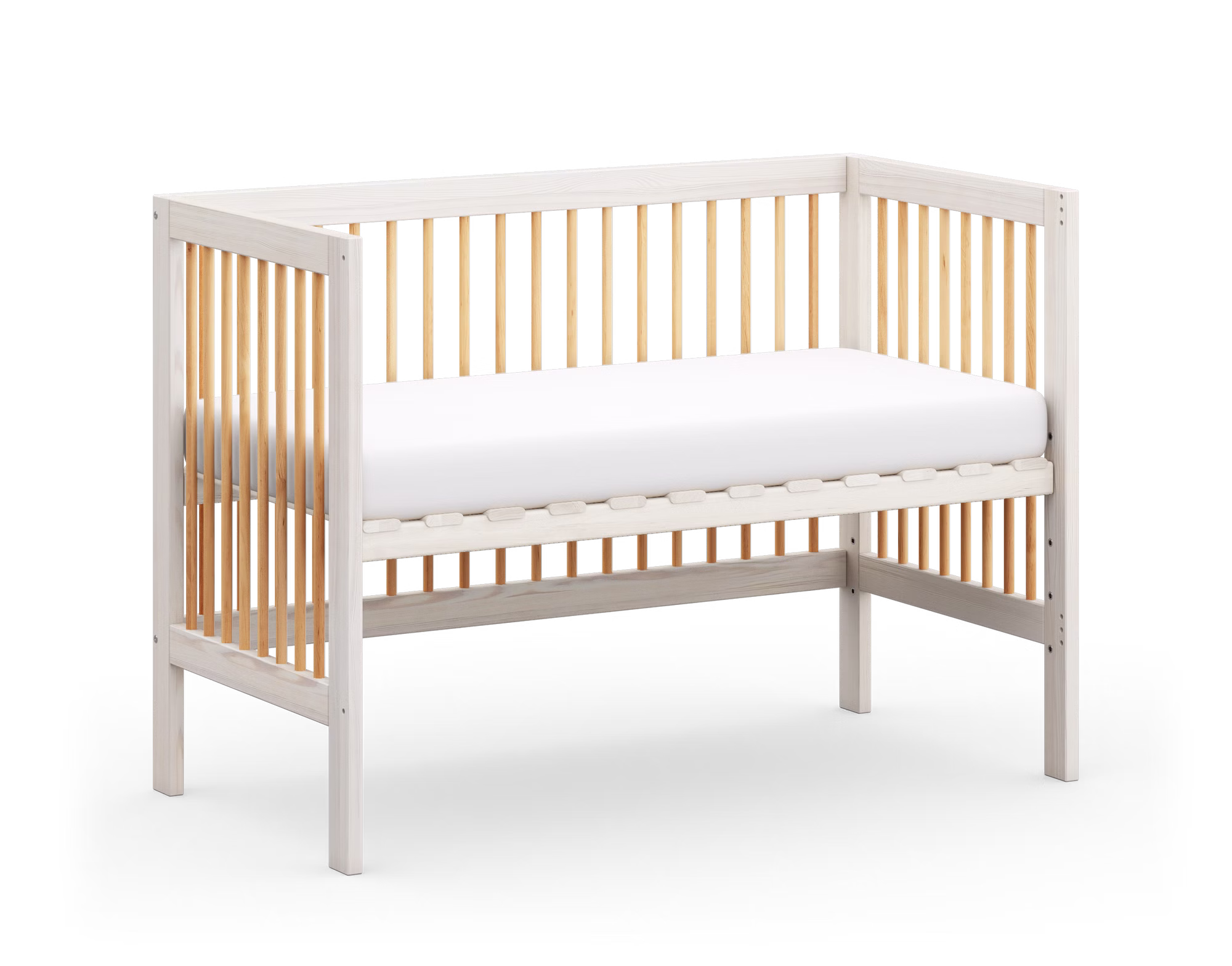 Das Paula Babybett aus Bio-Massivholz vereint durchdachtes Design, Funktionalität und Nachhaltigkeit. Dieses Bett ist perfekt für kleinere Kinderzimmer und das Elternschlafzimmer und verfügt über praktische Funktionen: