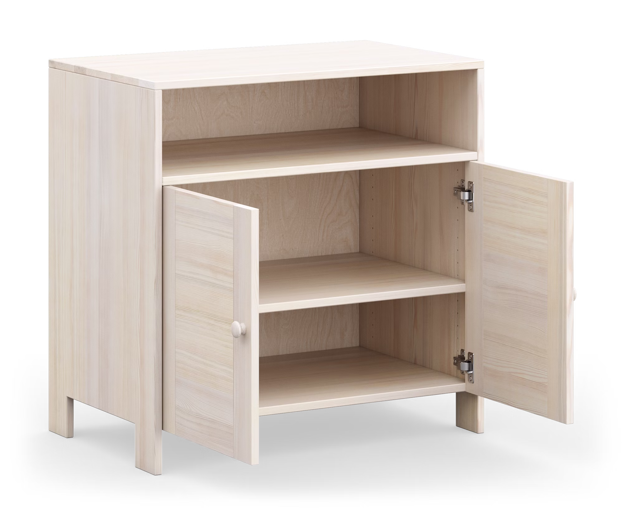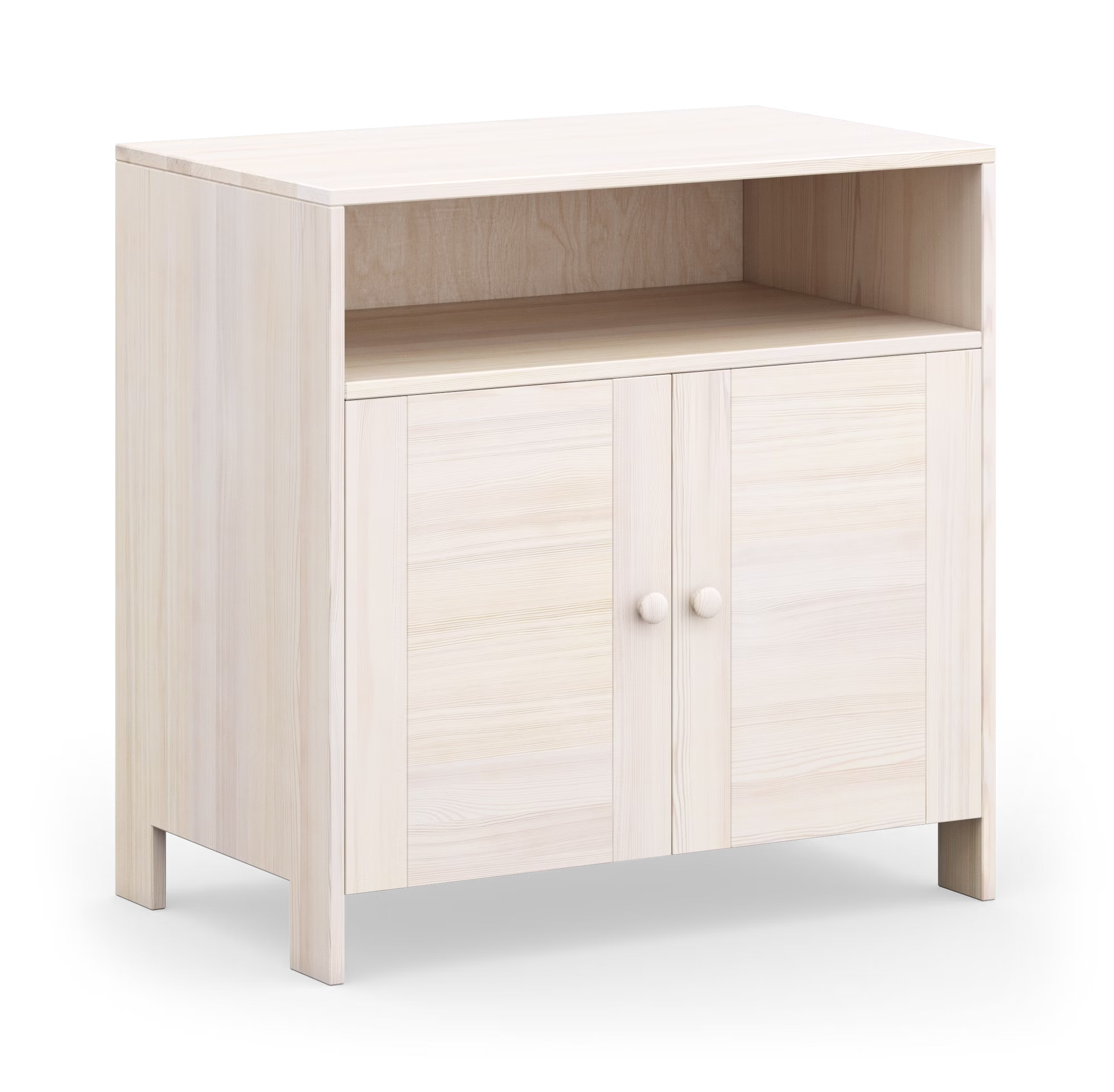 Die Niklas Wickelkommode ist der verlässliche Begleiter durch die Baby-und Wickelzeit. Wir haben uns genau überlegt, welche Handgriffe beim Wickeln wichtig sind und haben die Niklas Kommode entsprechend angepasst: Im großen offenen Fach sind Windeln, Pflegeutensilien, Bodies und Höschen sofort zugänglich. Hinter den schönen Türen mit Intarsien-Optik befinden sich zwei große Fächer zum Verstauen von Kleidung oder Spielsachen.