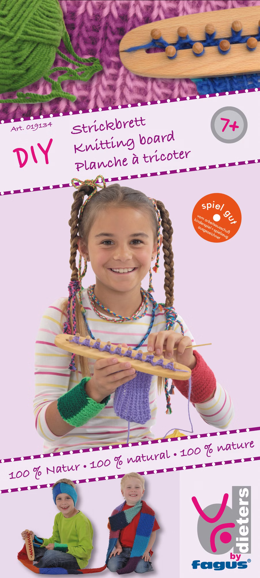 Mit diesem Strickgerät gelingt der Einstieg in die Welt des Strickens spielend leicht. Die grundlegende Technik wird verständlich vermittelt und ist deutlich einfacher als das Stricken mit klassischen Stricknadeln, ganz nach dem Prinzip eins rechts, eins links.Im Set sind bereits Wolle in zwei Farben, eine Häkelnadel und eine leicht verständliche Anleitung enthalten. So können im Handumdrehen erste eigene Projekte wie Stulpen oder ein Stirnband entstehen. Gleichzeitig fördert das Strickgerät Konzentration, Feinmotorik und Geschicklichkeit.