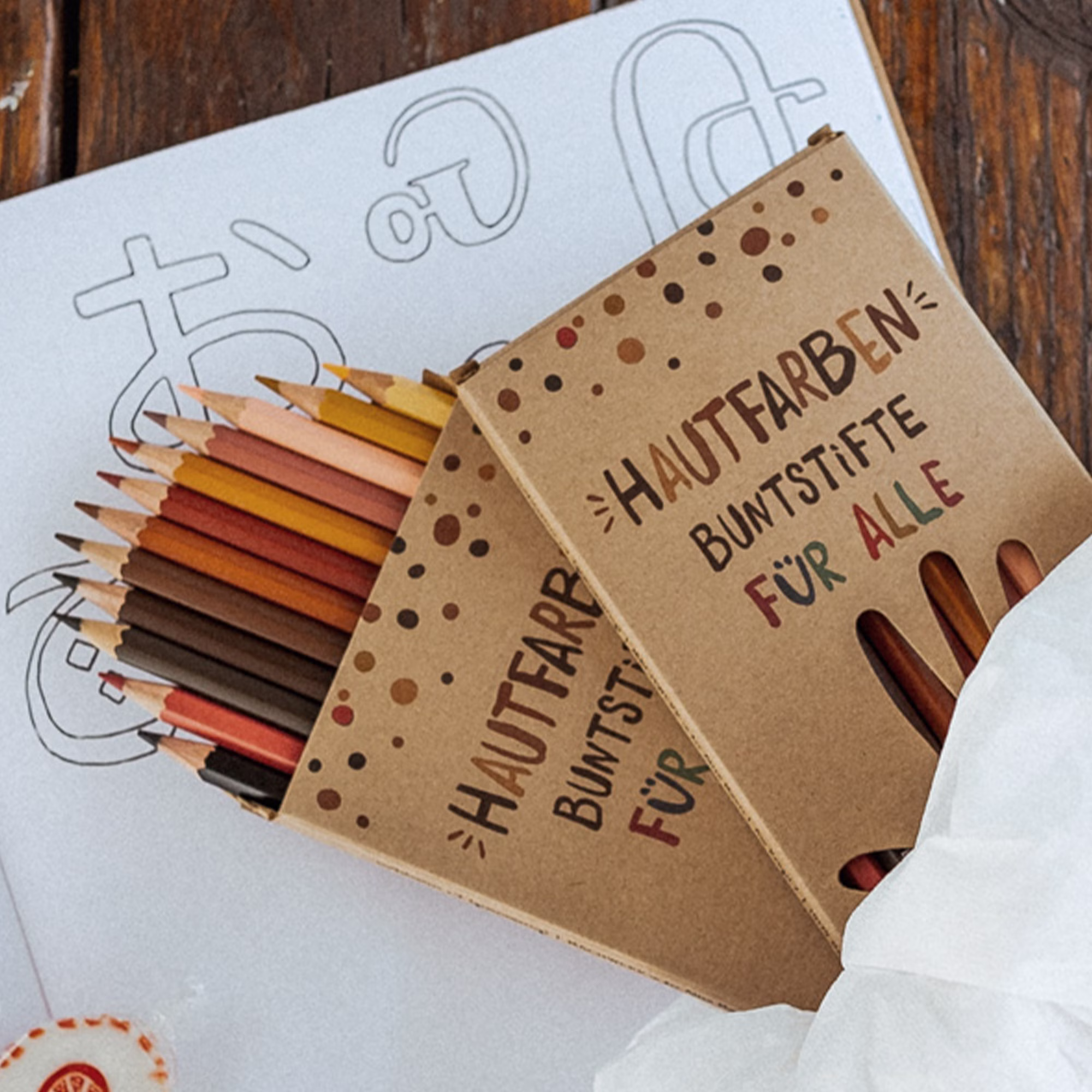 Die Idee hinter den Hautfarben-Buntstiften ist ebenso einfach wie wirkungsvoll: Sie unterstützen eine diversitätsbewusste und antidiskriminierende Erziehung. Entwickelt in enger Zusammenarbeit mit Pädagog:innen sowie Expert:innen aus der Antirassismus-Arbeit, bieten sie Kindern einen niedrigschwelligen Zugang zu Themen wie Gleichberechtigung, Respekt und Vielfalt. So wird schon beim Malen spielerisch vermittelt, dass alle Menschen verschieden und gleichzeitig gleich wertvoll sind.