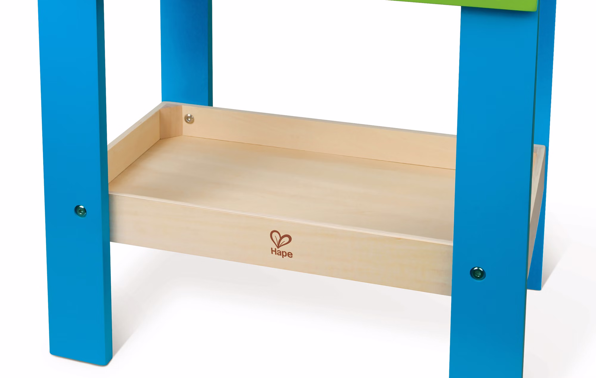 Dank der stabilen Bauweise ist die Werkbank ideal für viele kreative Spielstunden geeignet. Kinder können alleine oder gemeinsam mit Freunden an neuen Projekten arbeiten und immer wieder neue Ideen ausprobieren. So wird die Werkbank schnell zum Mittelpunkt im Kinderzimmer und sorgt für abwechslungsreichen Spielspaß voller Entdeckungen.