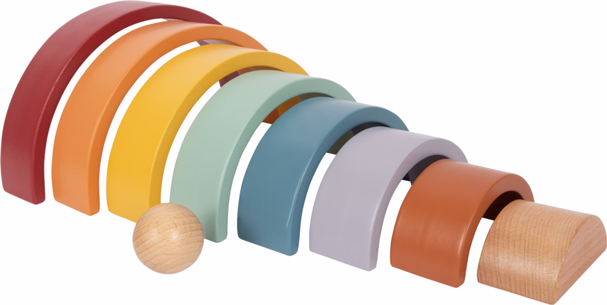 Dieser robuste Regenbogen aus Holz inklusive naturfarbener Holzkugel ist der ideale Begleiter im Kleinkindalter. Die 8 Holzbögen in trendigen Regenbogenfarben sind vielseitig einsetzbar zum Sortieren, Bauen oder Stapeln und überzeugen Groß und Klein durch ihre natürliche Haptik und besonders schöne Optik.