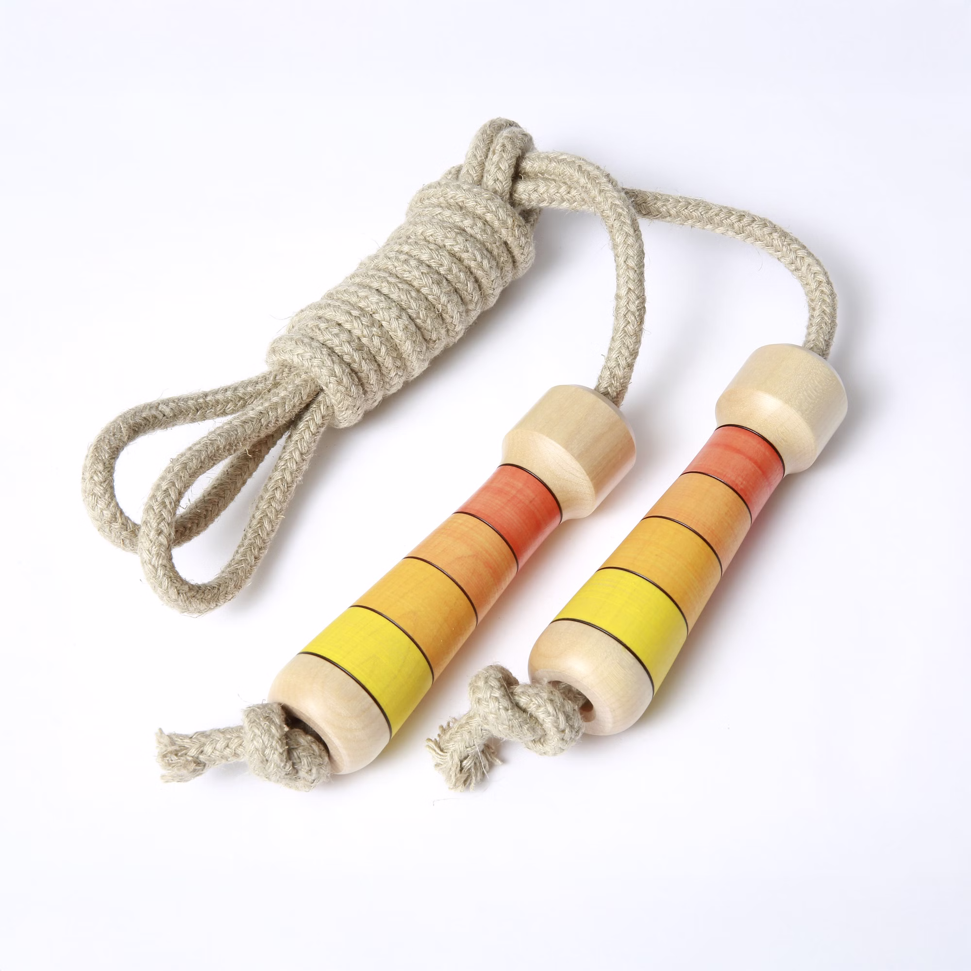 Die Springseile des österreichischen Herstellers Mader begeistern durch handgedrechselte Griffe aus Ahornholz welche mit natürliche Farben aus der Schweiz bemalt werden und den besonders reißfesten Seilen aus Leinen.