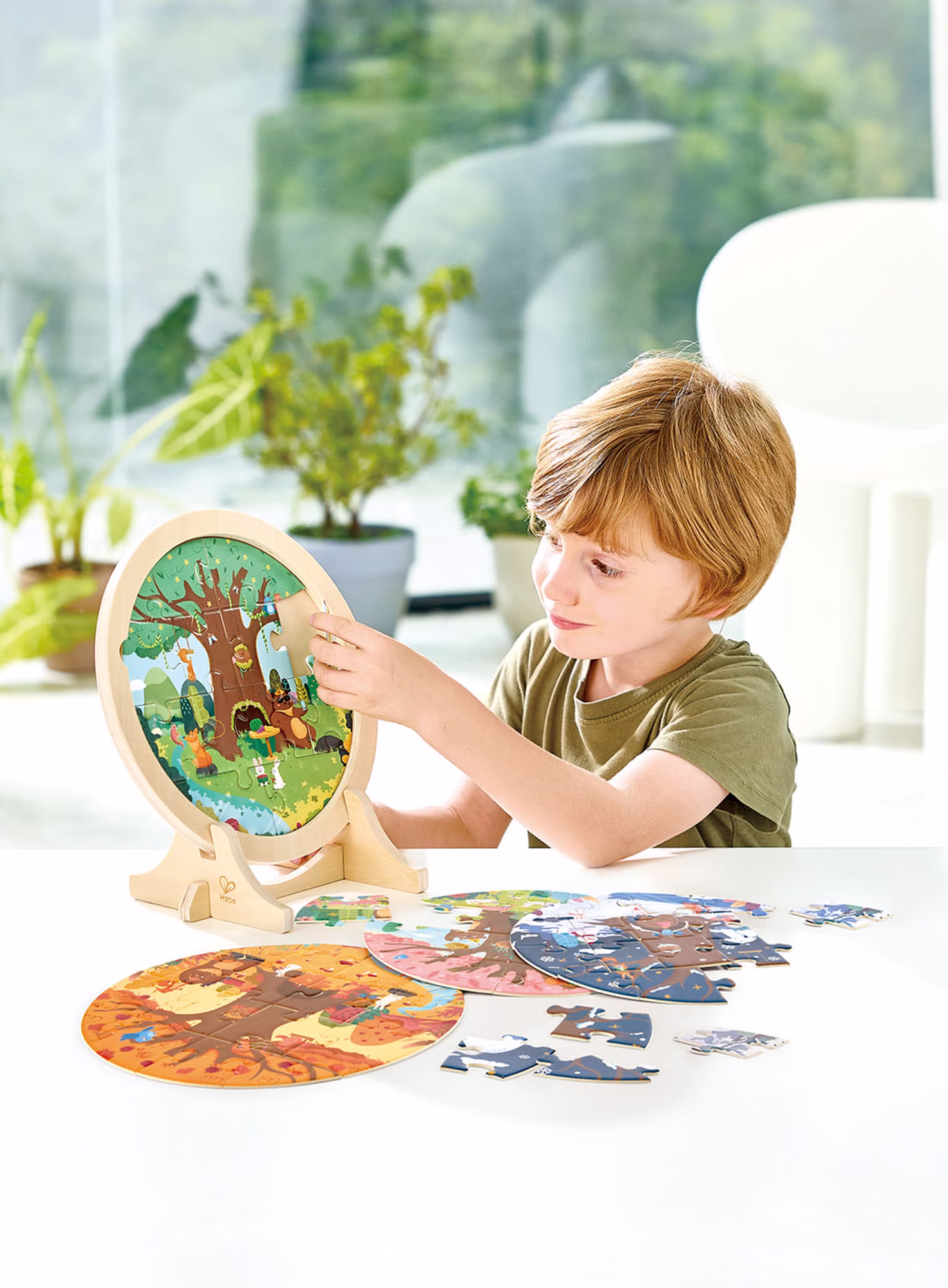 Mit diesem zauberhaften Puzzle lernen Kinder die verschiedenen Jahreszeiten kennen – vom Frühling bis zum Winter.