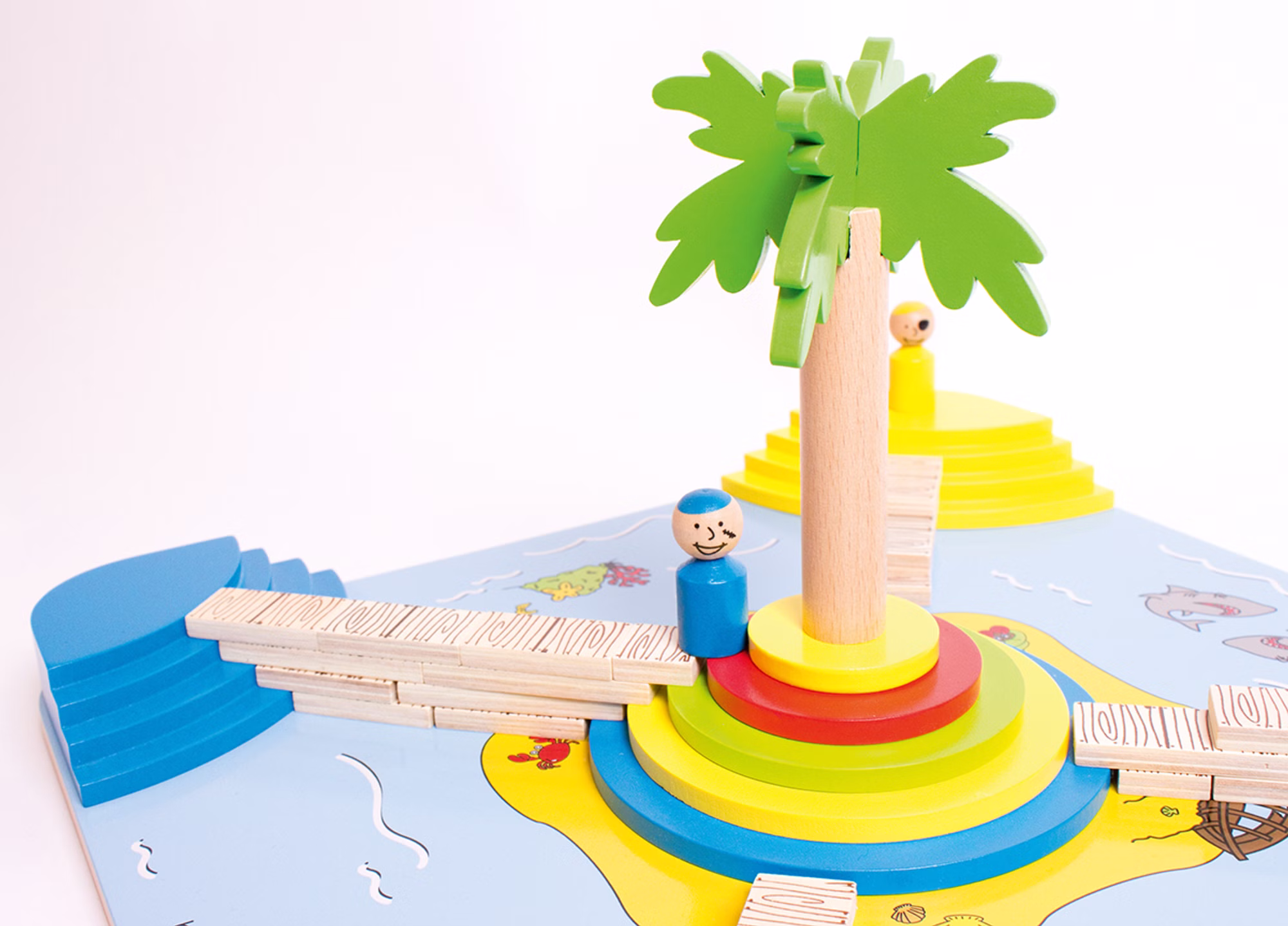Die Spieler würfeln reihum mit dem Symbolwürfel und bauen mit den gewürfelten Teilen nach und nach eine Brücke auf. Der Spieler, der zuerst eine vollständige Brücke zur kleinen Insel gebaut hat, darf sofort hinüberlaufen und den Schatz ausgraben.