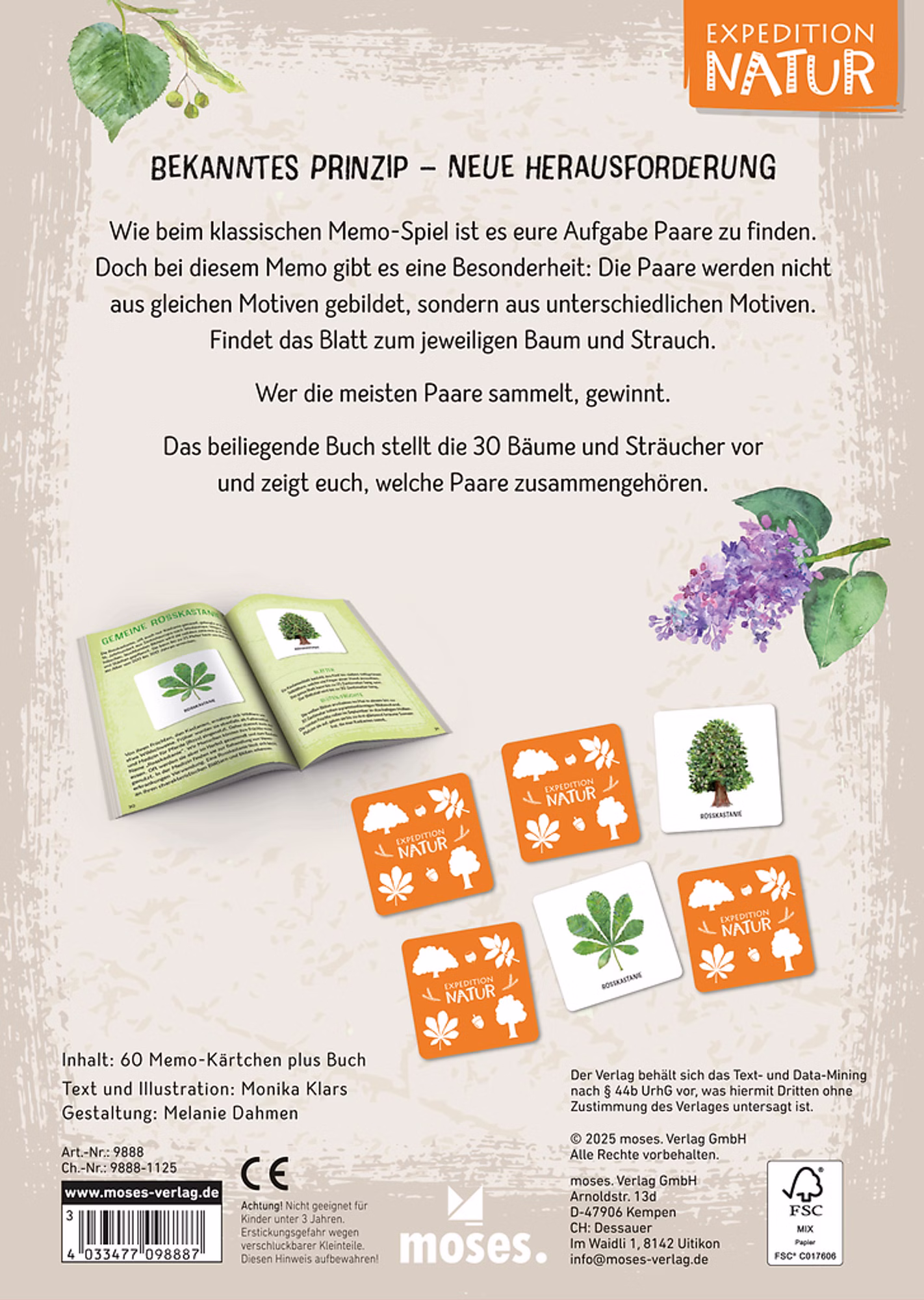 „Das große Bäume & Sträucher Memo“ macht die Natur zum interaktiven Abenteuer für Kinder und Familien. Spieler*innen ordnen Blätter den richtigen Bäumen und Sträuchern zu und lernen dabei 30 verschiedene Pflanzenarten kennen.