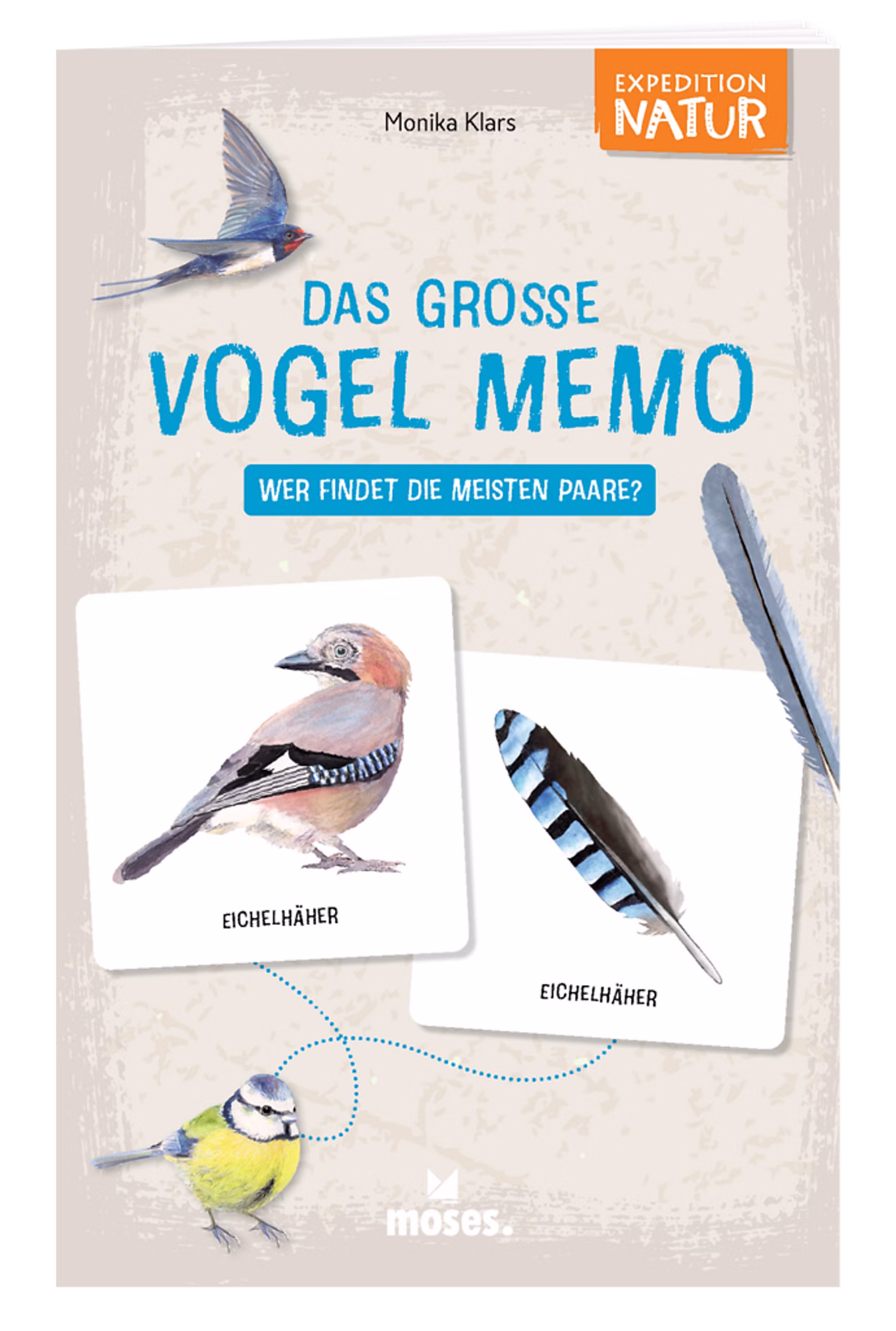 „Das große Vogel Memo“ verbindet Spielspaß mit Wissen über die Vogelwelt. Kinder und Familien lernen 30 verschiedene Vogelarten kennen, ordnen Federn den richtigen Vögeln zu und entdecken spannende Fakten im beiliegenden Sachbuch.