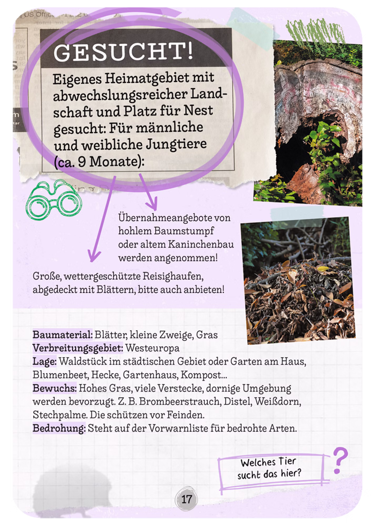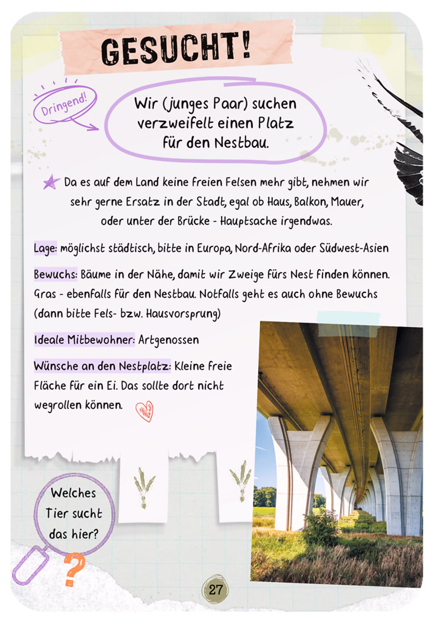 Das „Quiz – Tierische Wohnung gesucht“ bringt spielerisch Wissen über die Tierwelt ins Kinderzimmer. Anhand origineller Wohnungsanzeigen müssen die Spieler die passenden tierischen Bewohner erraten und lernen dabei spannende Fakten über ihre Lebensgewohnheiten. Ein interaktives Quiz, das Neugier, Logik und Naturwissen auf unterhaltsame Weise verbindet.