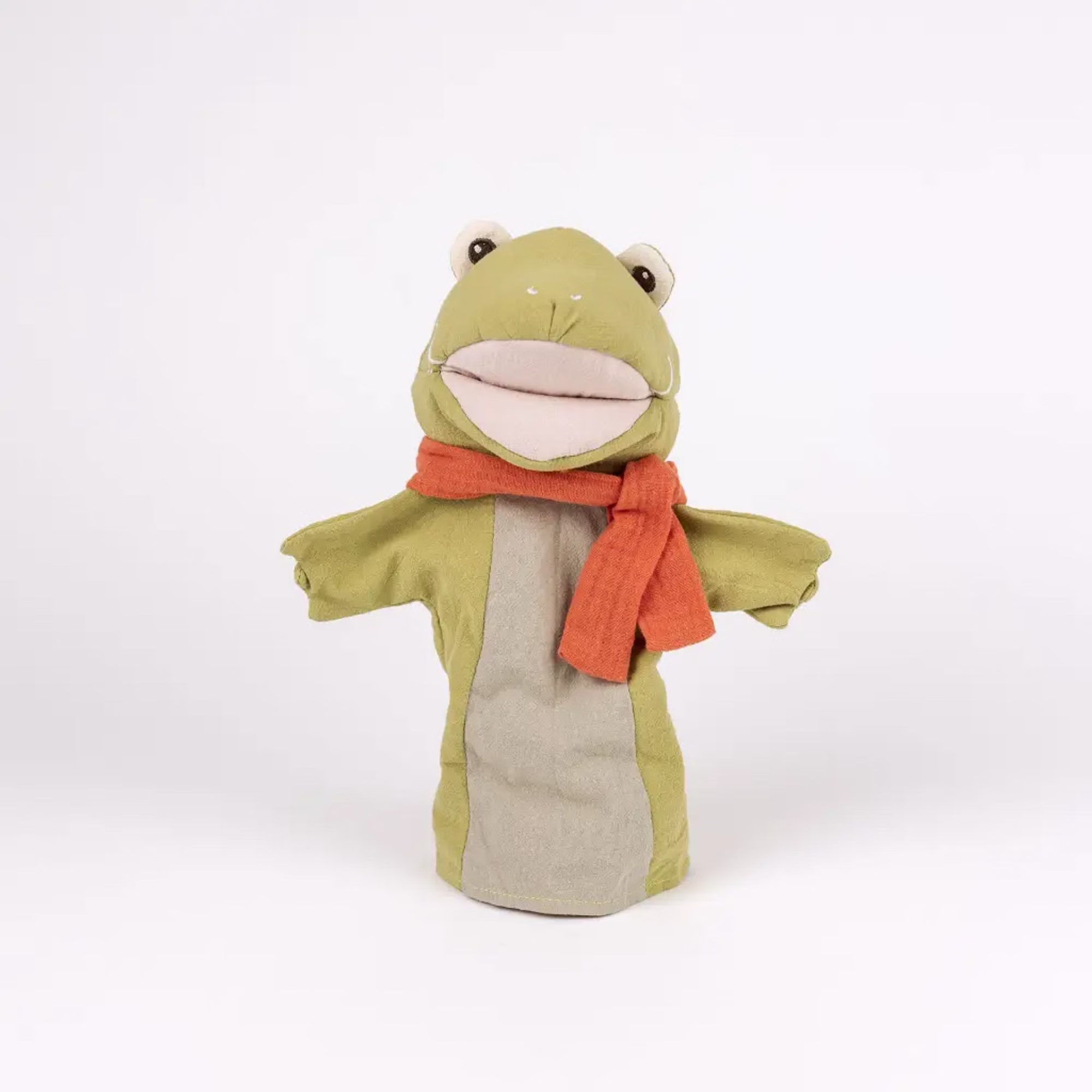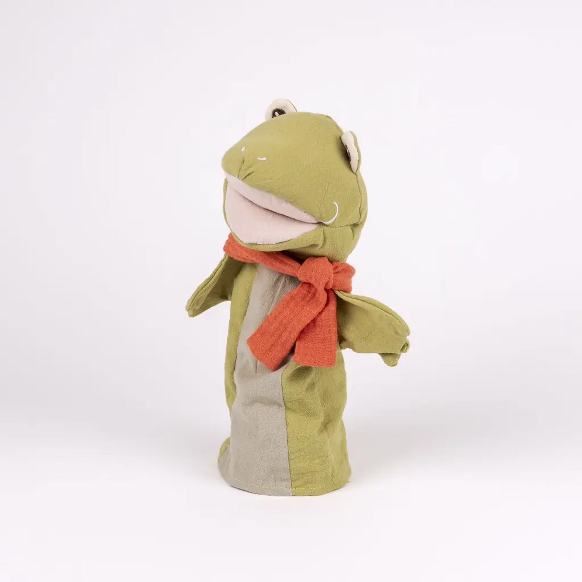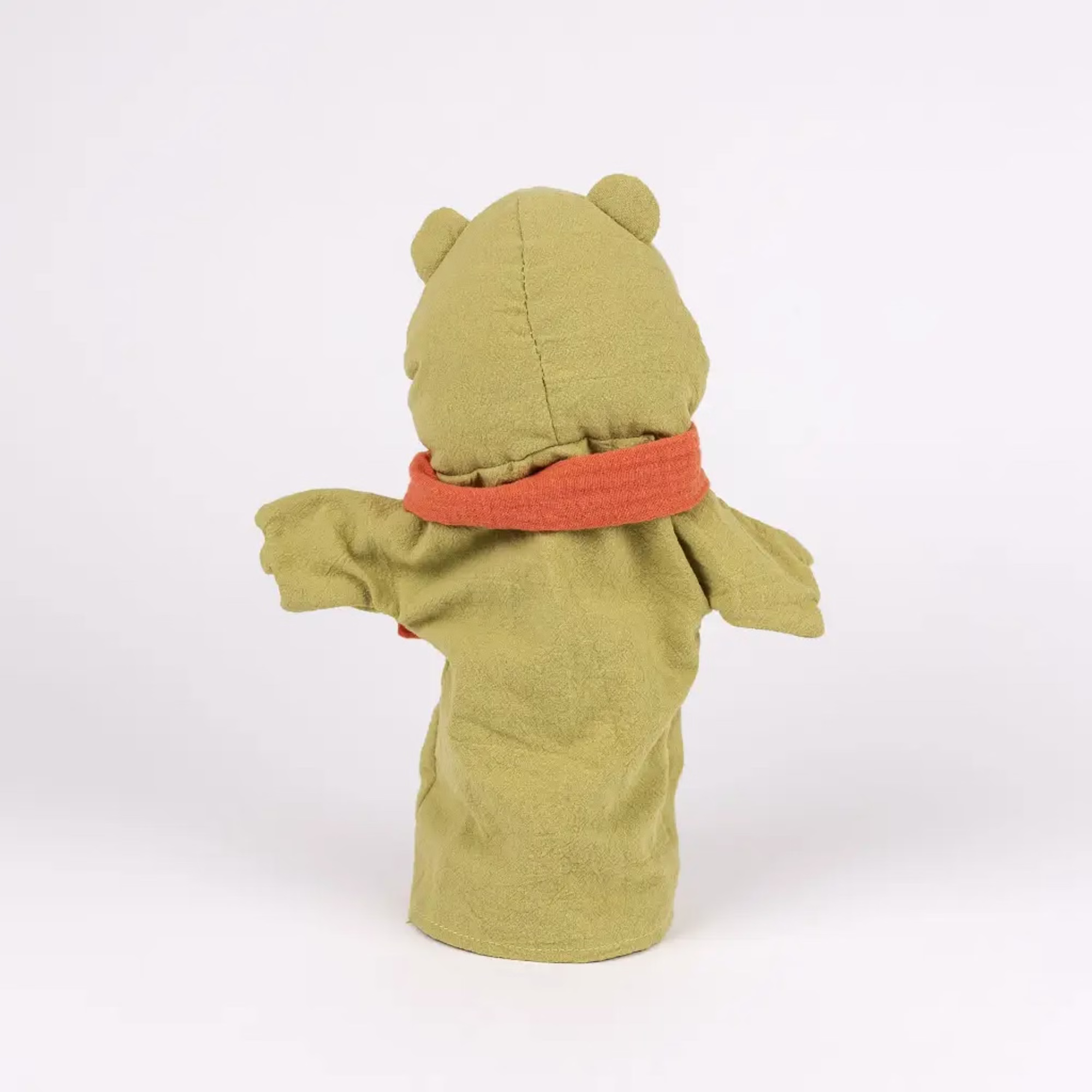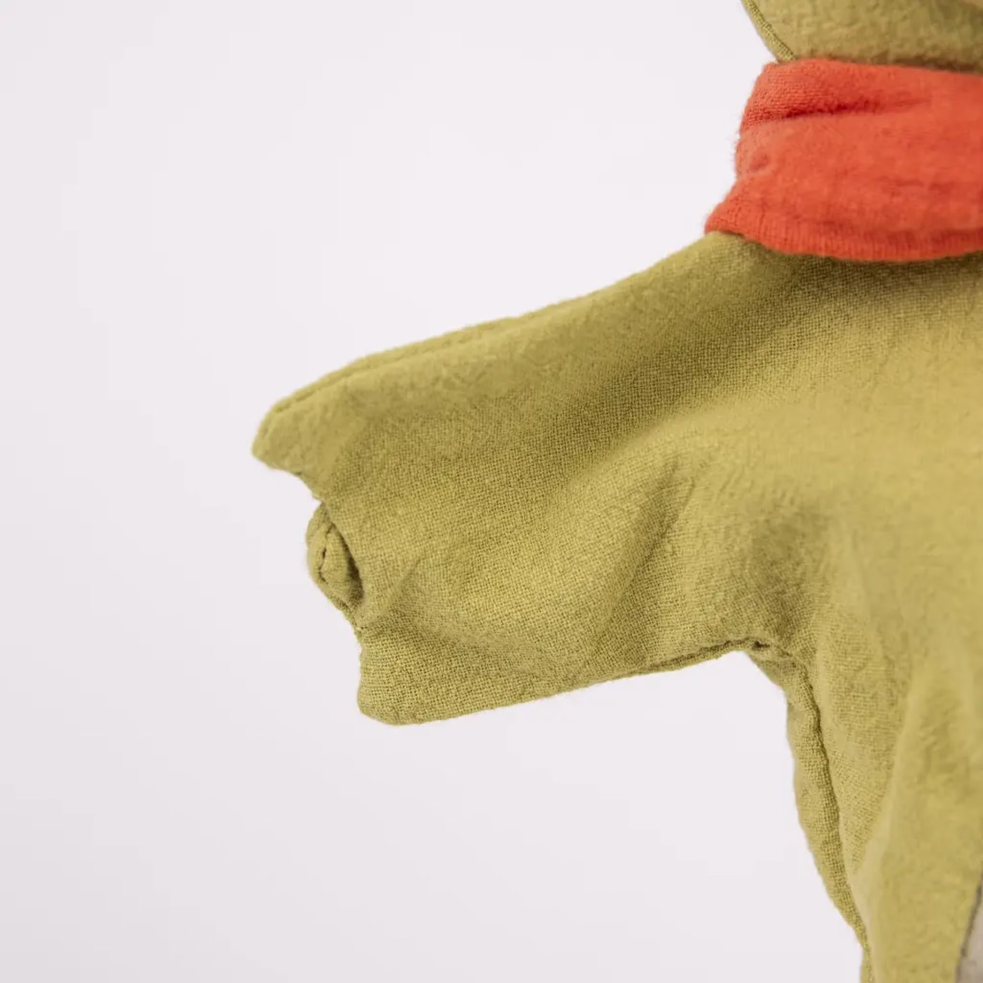 Die Hand wird in die Handpuppe aus Baumwolle gesteckt und der Mund wird im Rhythmus der Geschichte bewegt.