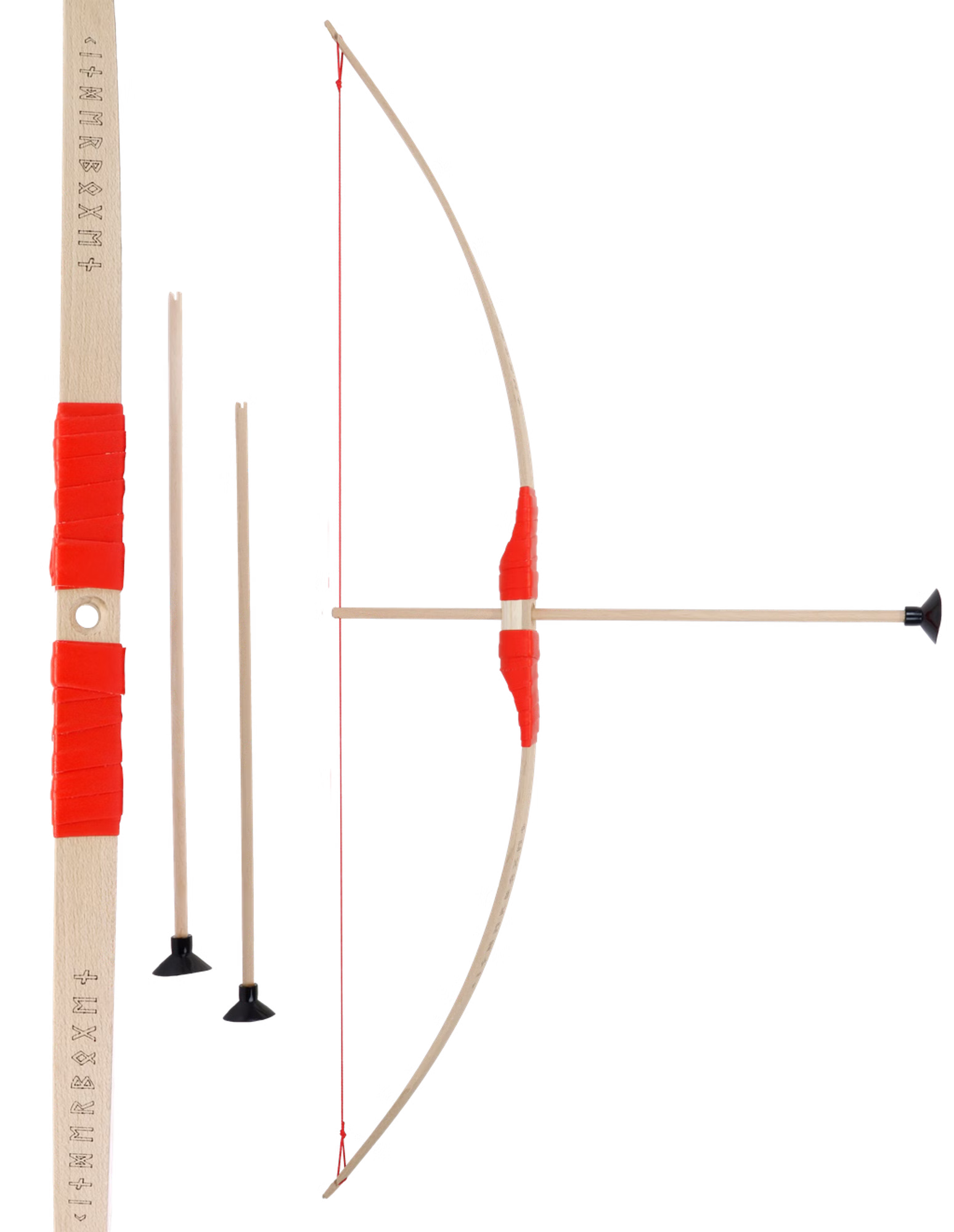 Zusätzlich sind auf beiden Wurfarmen des Bogens altdeutsche Runen, die das Wort "Kinderbogen" darstellen mit Laser eingraviert.