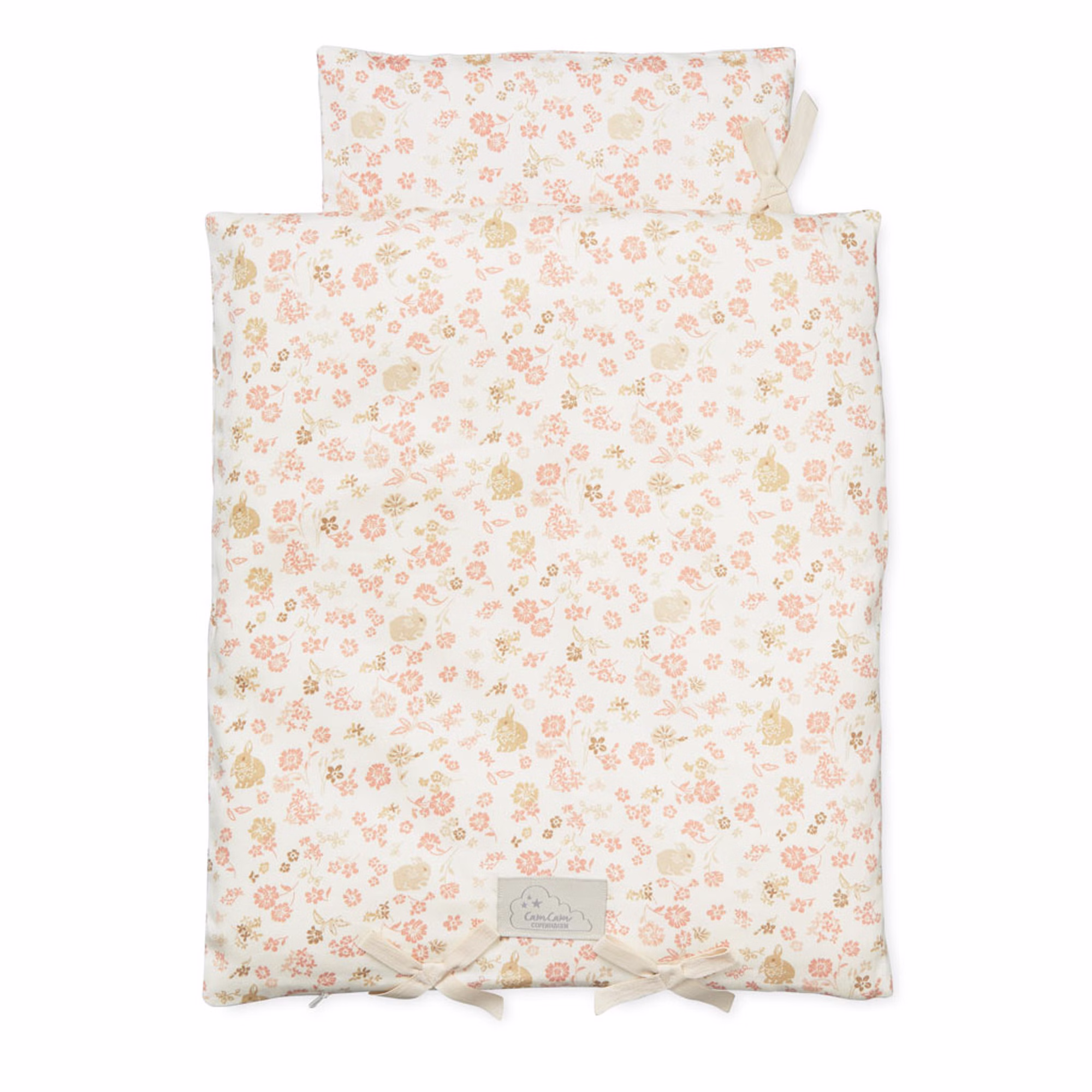 Hübsches Puppenbettwäsche Set aus 100% GOTS-zertifizierter Bio-Baumwolle. Das Set besteht aus einer Puppendecke und einem Kissen, beide mit biologischer Füllung. Kleine Schleifchen sind als extra Detail am unteren Rand angebracht. Der Bezug kann mit einem Reißverschluss abgenommen und gewaschen werden.